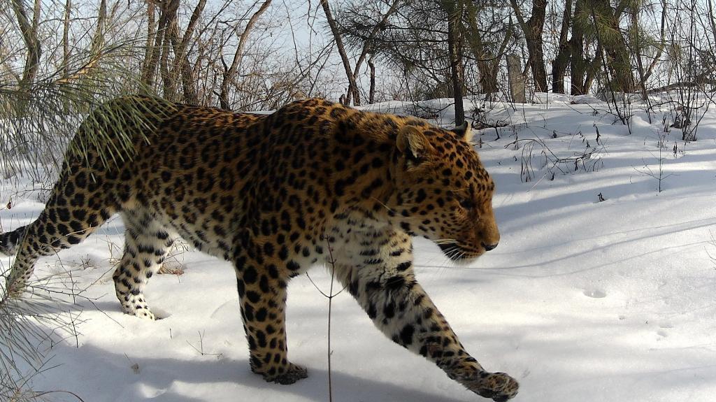 这是布设在甘肃子午岭省级自然保护区境内的红外相机拍摄到的华北豹活动画面。(甘肃省庆阳市野生动植物保护站供图)