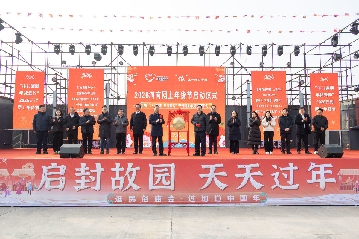 1月16日上午,随着一声清脆的锣响,“2026河南网上年货节”在开封市祥符区朱仙镇启封故园正式拉开帷幕。