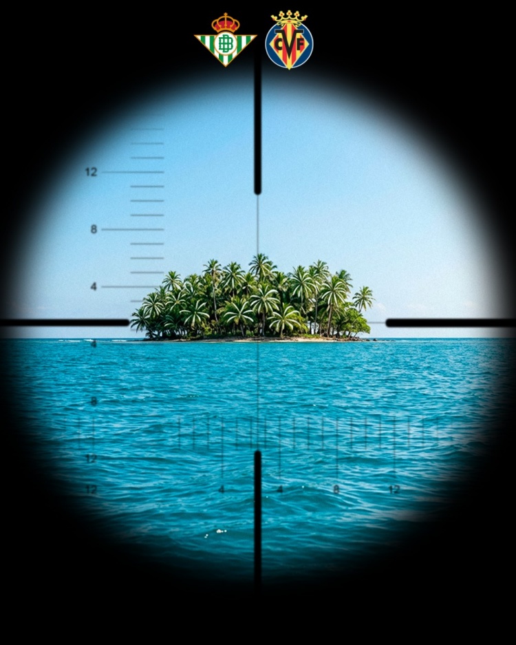比利亚雷亚尔此役赛前晒出海报,内容为潜水艇瞄准海岛,配文:“锁定目标。”