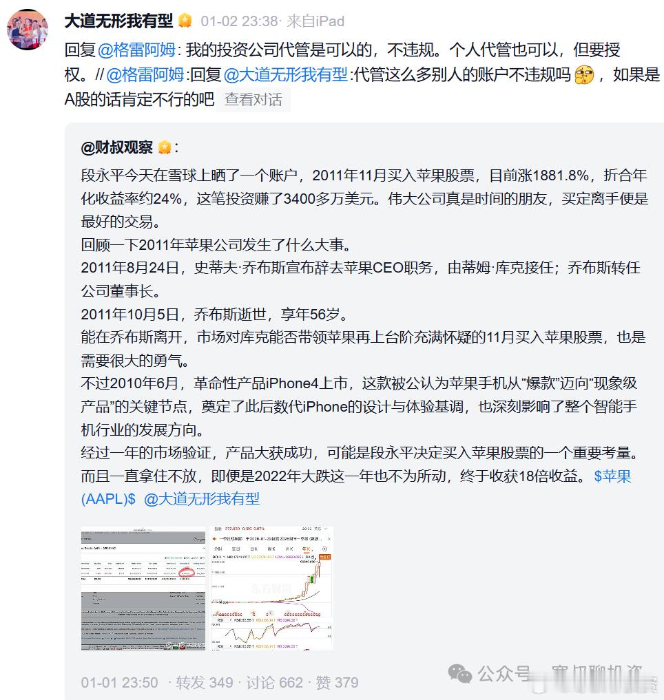 命运的分水岭-资源红利”和“颠覆式创新”(1)在一档名为《共同说》的节目中,王石与段永平罕见同框。段永平: 穿着商务短裤、运动鞋,神态松弛,谈笑风生。王石: 戴着花白假发套,气口略虚,透着一种“拧巴的挣扎”。这让人不禁想起当年他在企业家大会上指点江山的意气风发。2026年新年田朴珺发微博“2026年一起共赴山海的时候”,不知道有没有让王石有想起16年前登顶珠峰时候的风光无限;他此刻面对的现实是:74岁高龄仍在为一款备受争议的燕窝站台,而销量寥寥。 与此同时,段永平在大洋彼岸晒出了一张账户截图:过去15年,收益率1881%,持仓合计146亿美元。命运的齿轮早在几十年前就开始转动,长期的命运差别,不在起点,而在中途的那次关键转向。