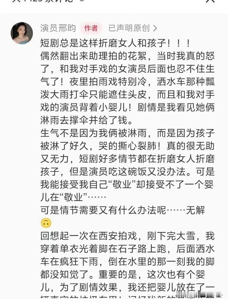 我以为内娱自己够烂了 没想到短剧行业还能更恶心 居然让几个月大的小孩淋雨拍戏 剧组可以用假人宝宝,就为了节省时间不愿意换,让一个小婴儿淋雨! 更恶心的是孩子的父母,就为了800块,让自己的亲生骨肉被这样虐待,真的是什么人都能当父母了。 短剧三观真的是从里到外都不正。