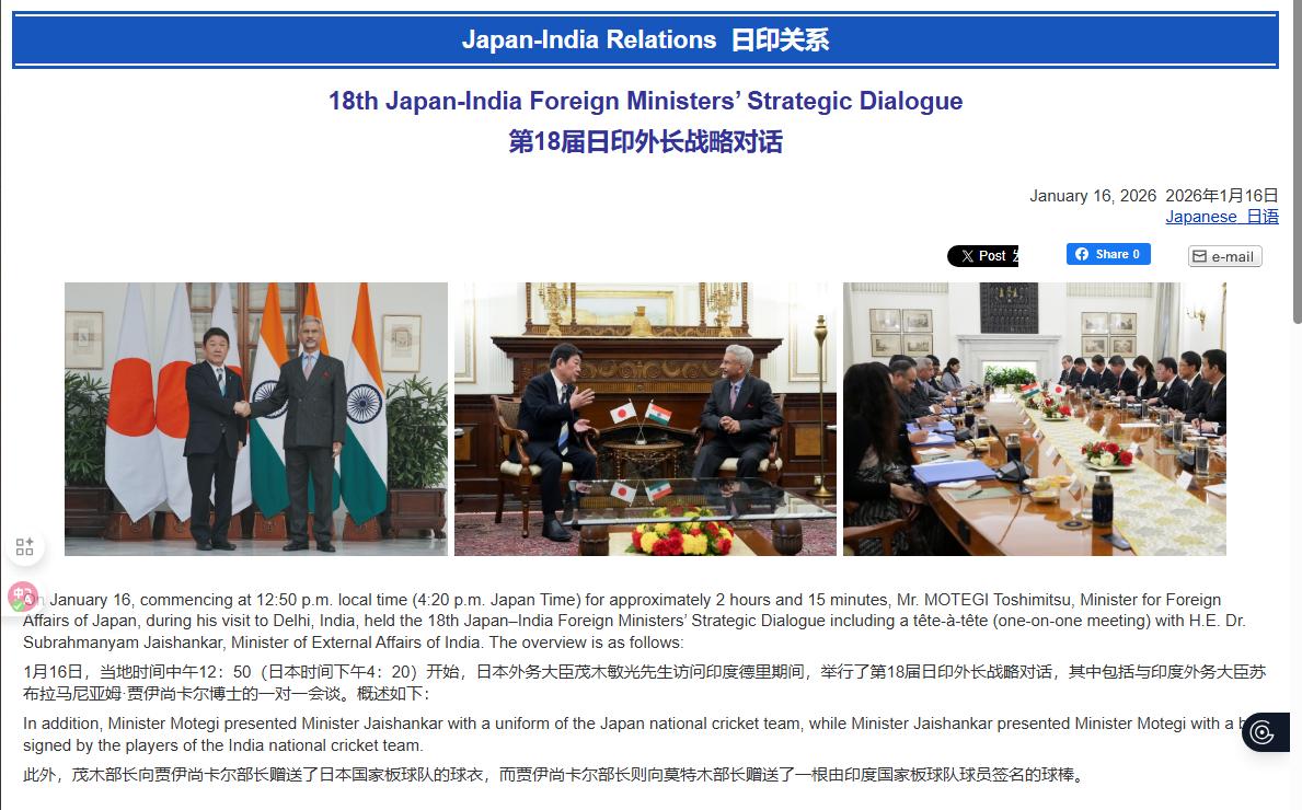 日本求援印度了?!1月16日,日本外相茂木敏充与印度外长苏杰生,两人在新德里关起门来谈了两个多小时。日方事后赶紧宣布,双方在AI人才和供应链安全上达成了深度共识。甚至还要在2030年前请500个印度高端AI专家去日本定居。 说白了,日本现在是真急了。高市早苗政府因为在台海问题上不断过嘴瘾,已经尝到了中方断供稀土的苦头。这时候找印度谈矿产合作,其实是在找救命稻草。 但问题在于,印度这根稻草真的靠得住吗? 印度愿意跟日本谈AI合作,是因为特朗普政府收紧了签证,印度人才去不了硅谷,正好去日本这个“备胎”赚点日元。 至于日本最看重的“经济安全”,在印度人眼里,那其实是“印度优先”的代名词。 日本想要印度的矿产,印度却想要日本的钱和技术。这就好比一个家里没粮的管家,想去跟邻居借米,邻居却说:借米可以,但你得先把你们家最值钱的锄头送给我,还得替我把门口的雪给扫了。 所以,这所谓的“长谈”和“共识”,其实各怀鬼胎。 日本是想把印度拉进自己的反华包围圈,哪怕莫迪不点头,拉拢苏杰生也算个心理安慰。而印度则是看准了日本现在的外交孤立,不失时机地多要点好处。500个AI专家赴日,对印度来说是输出人才红利,对日本来说,却是承认自己在尖端技术竞争中已经彻底落后了。 这就好比两个在暴雨中撑伞的人,日本人的伞已经漏了洞,想往印度的伞下挤。印度人倒是没推开他,但要求日本必须帮忙扛包。日本以为找到了遮头的地方,实际上却成了印度的苦力。 往深了说,这种基于“不安全感”的结盟,本身就是极度脆弱的。日本越是想通过印度来实现所谓的供应链多元化,就越是在向全世界证明:没有了中国,它的工业体系连半个月都撑不下去。 而印度这个“最聪明的博弈者”,绝不会为了日本这点微薄的聘礼,去坏了自己在金砖国家里的大事。苏杰生谈得再久,归根结底也只是为了在特朗普那根关税大棒落下之前,多给自己手里攒几张能跟大国叫板的牌。 老实说,日本这种试图在亚洲寻找第二个支点的努力,看起来更像是在井里捞月亮——看着很近,实则空空如也。 实事求是讲,茂木敏充在新德里的这番奔忙,改变不了日本外交被动挨打的现状。在一个只有利益没有情义的丛林世界里,一个自断经脉的国家,无论怎么跟印度谈“共识”,终究换不来真正的安全感。 以上是小编个人看法,如果您也认同,麻烦点赞支持!有更好的见解也欢迎在评论区留言,方便大家一同探讨。
