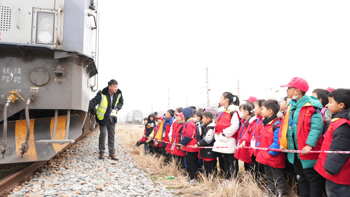 民警邀请折返段工作人员,用通俗易懂的语言讲解了火车的动力原理、驾驶操作流程以及日常检修保养知识,从蒸汽机车到复兴号的发展历程,从车轮运转到信号传递的工作逻辑,一个个专业知识点在生动讲解中变得简单易懂。小记者们围着火车头仔细观察,踊跃提问,在触摸与聆听中,对"钢铁巨龙"的敬畏之情与探索欲望油然而生。