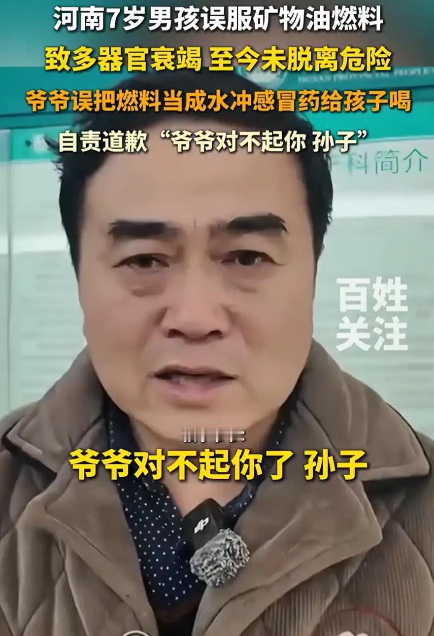 “天都塌了!”河南郑州,一名7岁男孩感冒生病,爷爷就用矿泉水瓶里的水给孩子冲药喝,可孩子喝了一口就发现不对劲,随后更是呕吐不止,神志不清,爷爷打电话问孩子爸爸,才知道里面根本不是矿泉水,而是矿物油燃料。 2026年1月16日午后,老人目睹孙子受感冒之苦,心疼如绞。他不假思索,随手拿起桌上那半瓶仿若“矿泉水”之物,便着手为孩子冲药。轩轩刚喝了一口,就皱着眉说:“味道怪”。 这本是孩子发出的最后求救信号,但不知情的爷爷误以为是感冒药的苦味,为了让孙子快点好起来,便哄着孩子又喝了几口。谁能料到,这瓶清澈透明的液体,竟是孩子爸爸特意从开火锅店的朋友那里带回来的燃料,原本是为了周末全家团聚围炉时准备的。 这种矿物油具有极强的欺骗性,无色无味,且化学性质异常稳定。正是因为这种“稳定”,误服者不会像喝下汽油那样因刺激性气味而剧烈呛咳,反而极易将其误当作饮用水大口吞下。 一旦进入体内,这些油脂便会迅速封锁肝脏和肾脏的所有微循环通道,如同无形的杀手,悄无声息地摧毁人体防线。 当接到爷爷带着哭腔的电话,父亲发疯般地冲回家时,看到的已是令人心碎的一幕。儿子瘫软在沙发上,眼神已经开始涣散,失去了往日的神采。 送至医院尚不足两小时,一纸沉重的病危通知书便已下达。这短暂的时间,如同一把锋利的刻刀,在亲人们的心头刻下了难以磨灭的伤痛。 医生的解释更是让人绝望:矿物油进入人体后根本无法通过自然代谢排出,它们就像凝固的水泥一样死死堵在器官里。目前的治疗手段只能依靠血液净化技术硬“洗”,试图将毒素置换出来。 然而,轩轩年纪太小,稚嫩的身体能否扛得住这种高强度的治疗折磨,谁也不敢打包票。ICU门外,父亲在这个寒冬里嚎啕大哭,悔恨的泪水洗刷不掉残酷的现实。 而远在江苏打工的妈妈,此刻正心急如焚地连夜往郑州赶,原本计划中温馨的周末团聚火锅宴,在这一刻彻底变成了生死的诀别。 “天都塌了!”这一声撕心裂肺的呼喊,道尽了这个家庭此刻的无助与绝望。 但这绝不是个例,而是关于“容器杀人”的第N次血色预警。 参考数据冰冷地揭示了现实:我国每年因误食装在食品容器中的危险品而导致中毒的案例超过2000起。 在这庞大的受害者名单中,近半数是缺乏辨别能力的儿童和眼花的老人。横向对比一下过往的案例,你就会明白这种隐患有多么普遍: 同样是“用错瓶子”,2023年广西有老人将剧毒百草枯误当作啤酒饮用。2024年山东有孩子将洁厕灵当作饮料灌下。 这些触目惊心的案例背后,都有一个共同的致命逻辑,致命的液体被随意装进了食品包装里。这种做法极其隐蔽且危险。许多家庭习惯用矿泉水瓶分装汽油、农药、清洁剂,内心总抱着一种“自己家人肯定知道”的侥幸。 殊不知,在紧急、疲劳或慌乱的时刻,人类的大脑会跳过理性判断,自动触发“矿泉水瓶=能喝的水”这一刻进基因的条件反射。 归根结底,是我们把“节俭”用错了地方,把致命的隐患埋在了最温馨的港湾。 用饮料瓶装燃料,看似省钱、方便、废物利用,实则是在家里安放了一枚“定时炸弹”。 轩轩爸爸当初索要那瓶燃料时,脑海中满是温馨憧憬。一家人围坐在一起,共享火锅的热气蒸腾,欢声笑语在屋内回荡,那场景宛如一幅温暖的画卷。他做梦也想不到,这瓶燃料最终会被当成“救命水”,亲手喂进了心爱儿子的口中。 现实往往充满了黑色的讽刺:如果当初他愿意多花两块钱,买一个带标识的专用燃料桶。或者在回家后的第一时间,找一张便签纸写上“有毒勿饮”贴在瓶身上,这场悲剧根本就不会发生。 可惜,现实世界里没有如果,只有ICU里每天上万的账单,和孩子那生死未卜的未来。 谨记于心,切勿以食品容器盛装任何非食用液体。此乃基本常识,关乎健康安全,切不可掉以轻心。这不是矫情,这是无数家庭拿鲜血和生命换来的惨痛教训。 如果你现在的家里,正摆着装在饮料瓶里的汽油、装在食用油壶里的洗洁精,请立刻、马上将它们扔掉。 消息来源:百姓关注1月17日报道