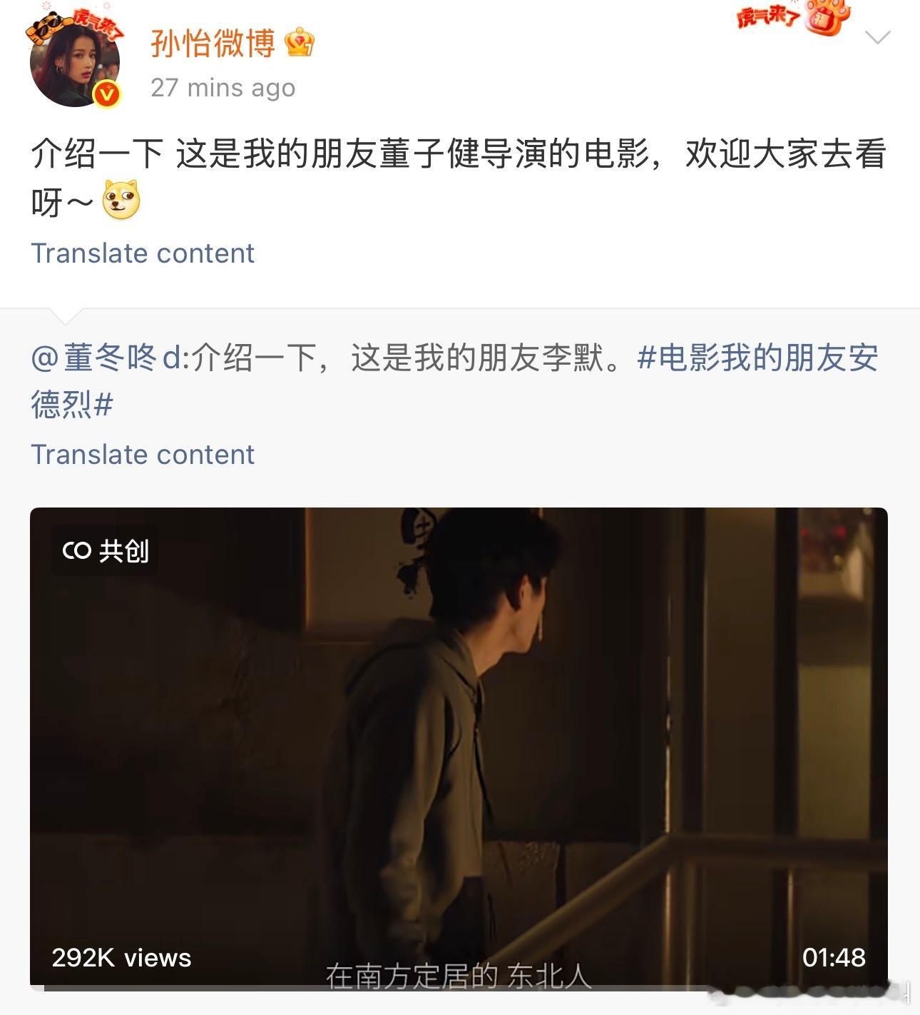 孙怡帮董子健宣传新电影 感觉这俩应该是离婚后还是朋友 (个人感觉有孩子后离婚后的家庭很难彻底断了联系