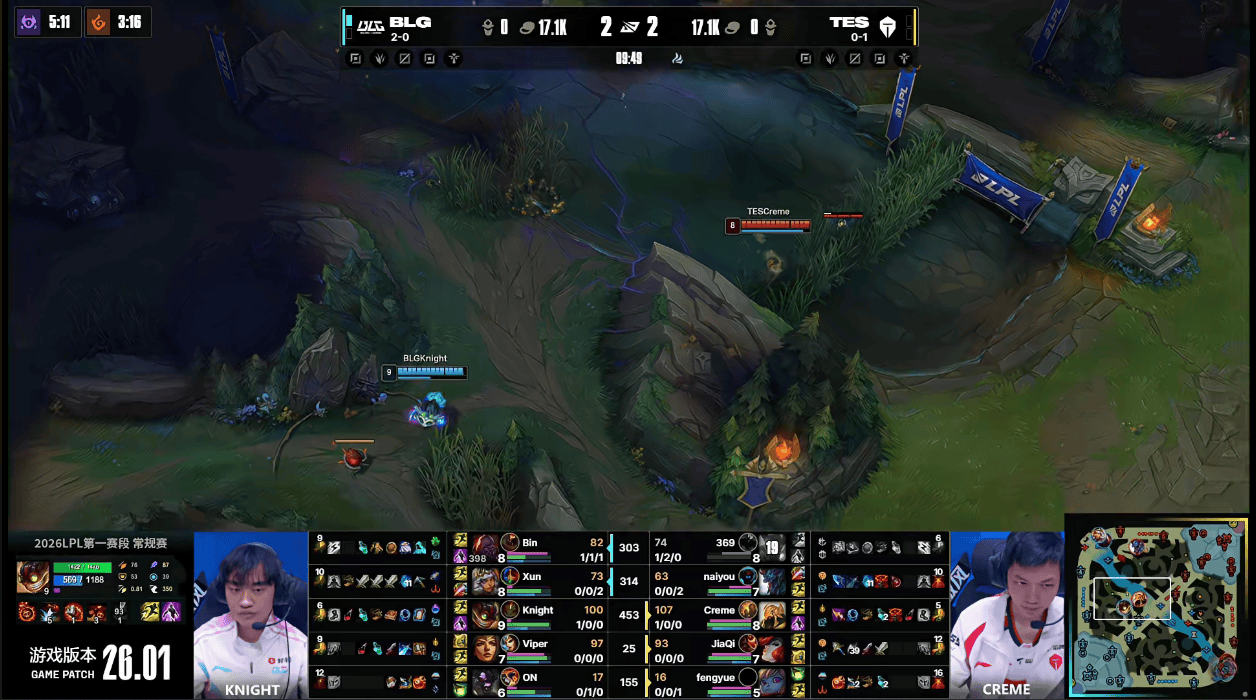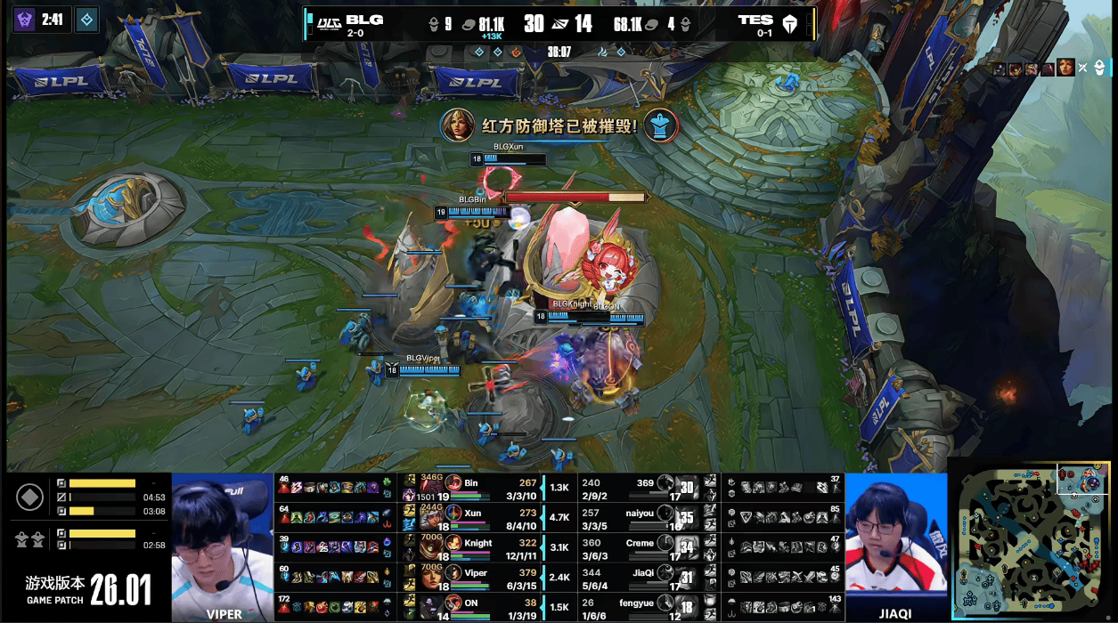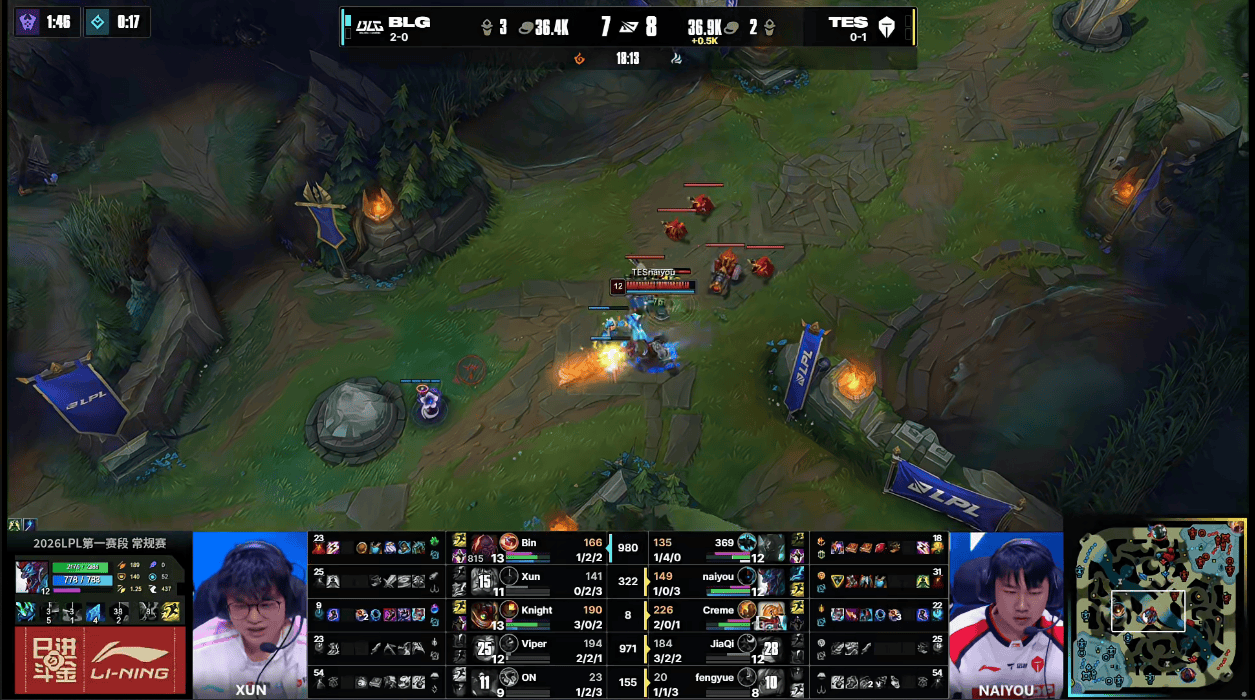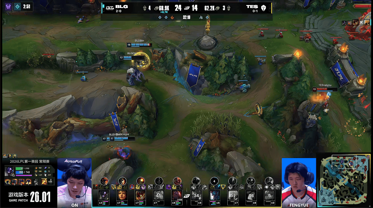 虎扑01月18日讯GAME2:BLG蓝色方;TES红色方