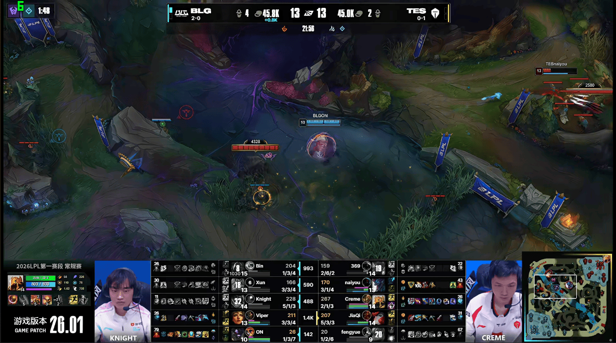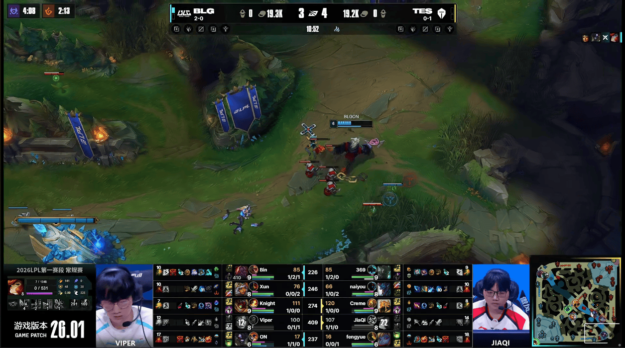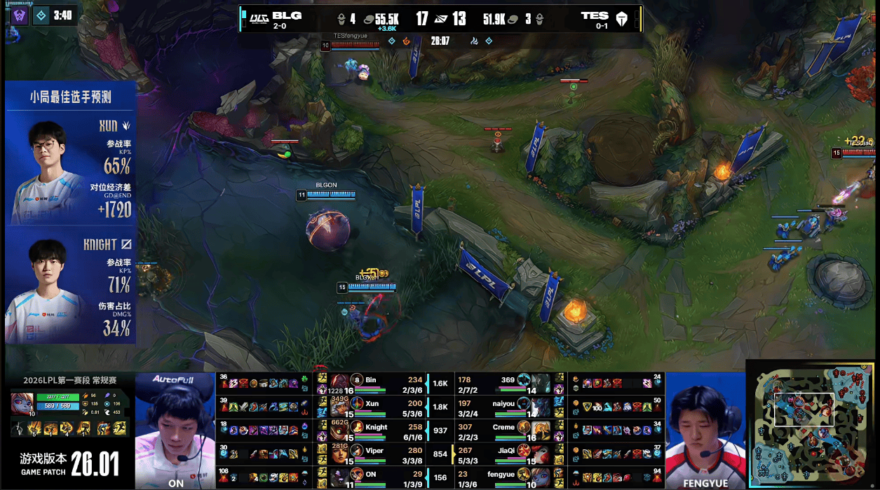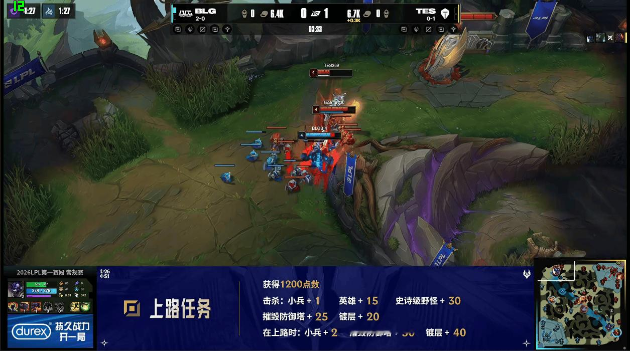 虎扑01月18日讯GAME2:BLG蓝色方;TES红色方
