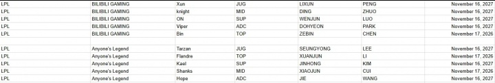 直播吧01月18日讯根据拳头官方合同库显示,BLG俱乐部与与中下野辅(Knight/Xun/Viper/ON)签约两年,AL与下野辅(Hope/Tarzan/Kael)续约两年。