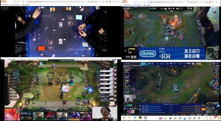 直播吧1月18日讯解说怀南恭喜BLG取胜,并晒出同时观看的比赛,BLGT1云顶附文战场,表示想要四双眼睛。