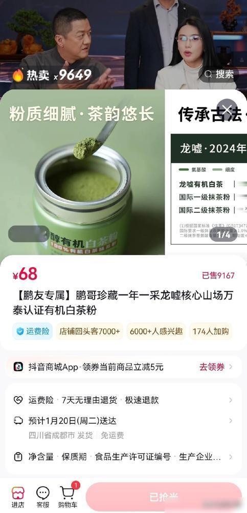 不出所料今晚李亚鹏直播间真的爆单了,白茶粉一万单上架秒没。 其实今晚原本是紫砂