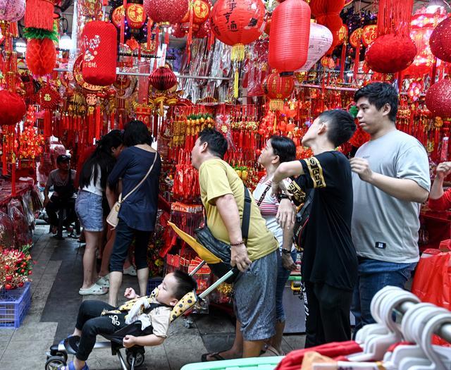 1月18日,在印度尼西亚雅加达中国城,人们购买春节装饰。新华社发(阿贡·昆卡亚摄)