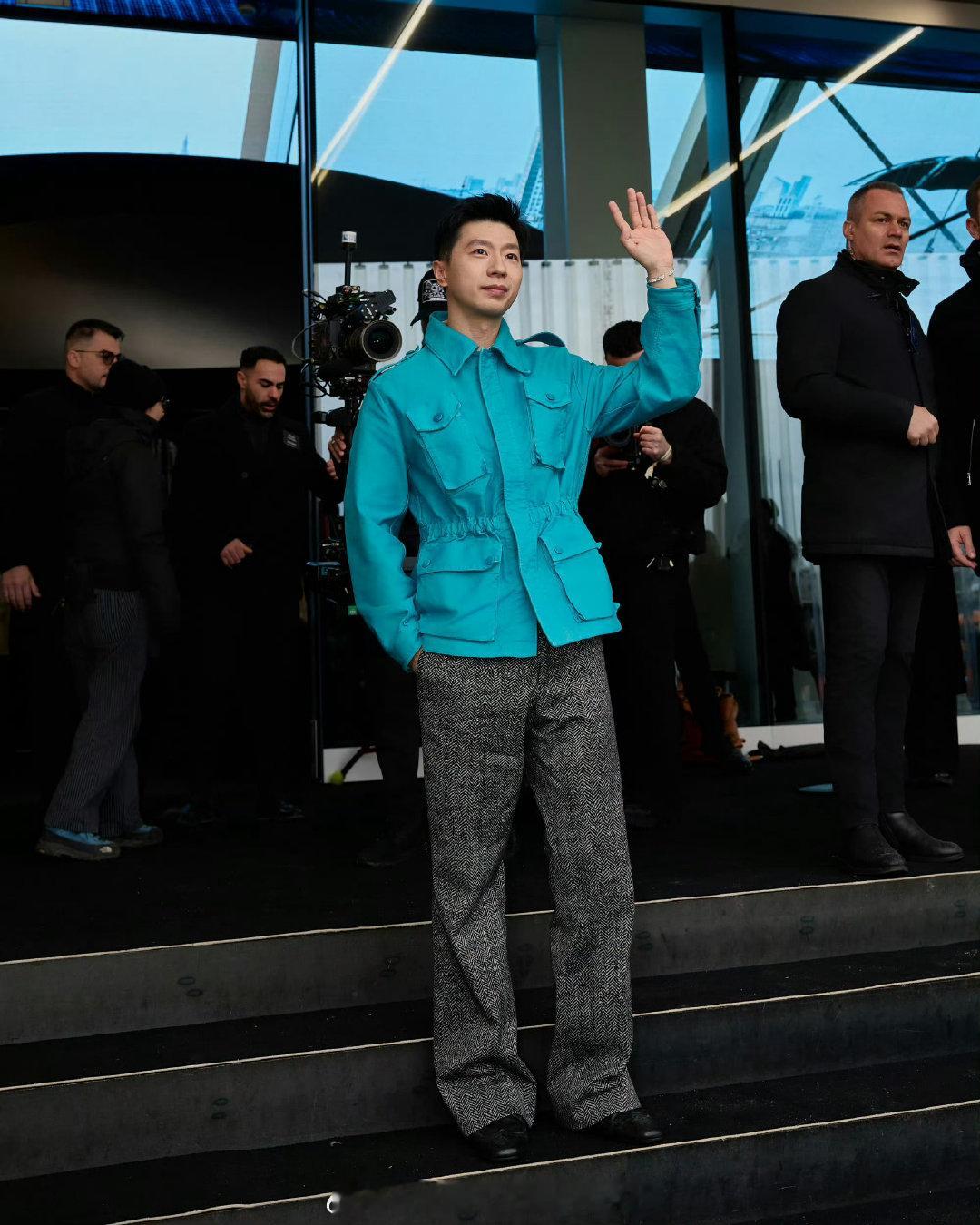 马龙又穿亮蓝色了 继去年时装周穿了亮蓝色夹克,今年马龙再度亮蓝点缀登场。又米又蓝