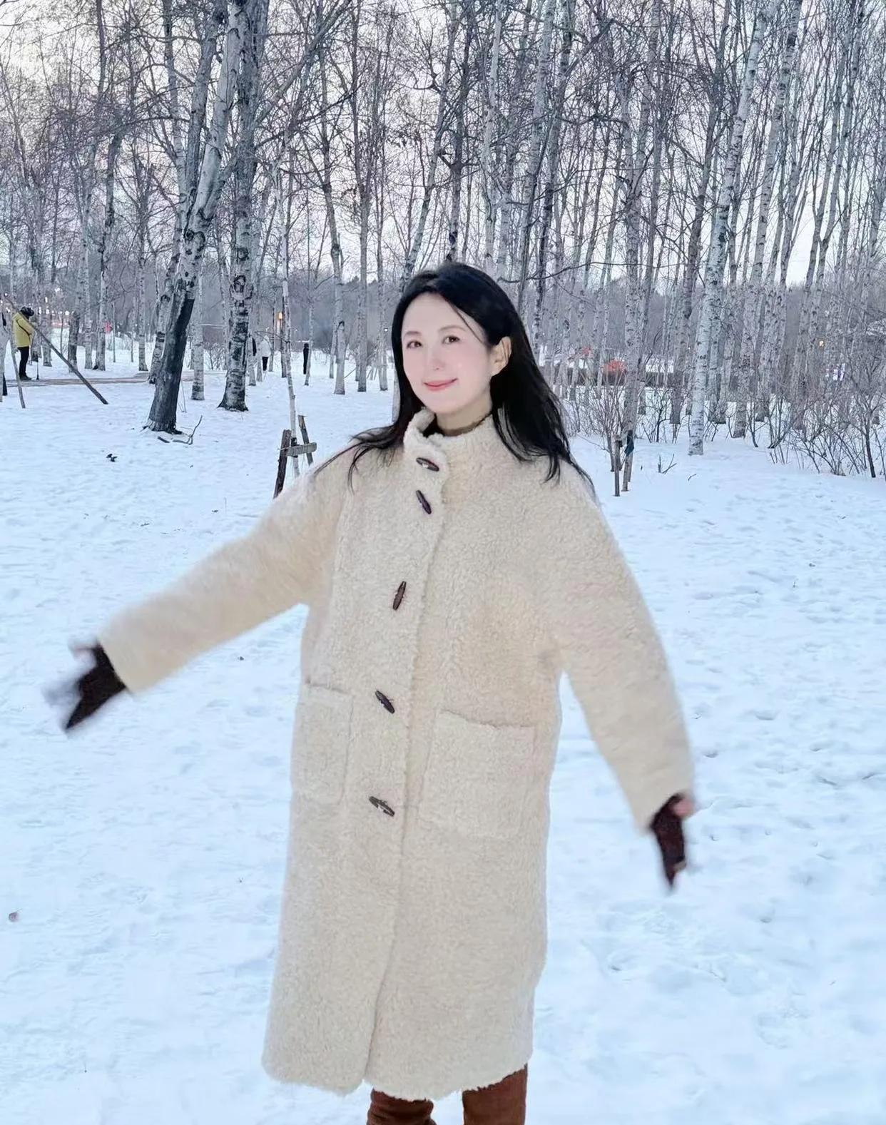 中年穿搭天花板!杨童舒的羊羔毛大衣造型,把温柔和元气焊在身上,我直接抄作业!气质女神