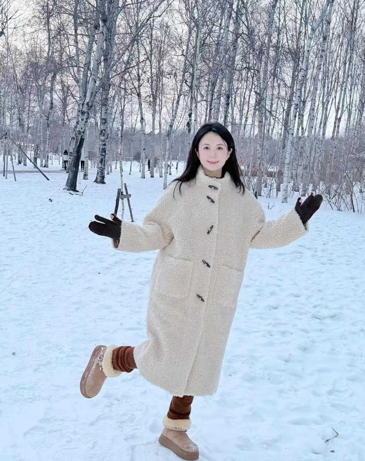 中年穿搭天花板!杨童舒的羊羔毛大衣造型,把温柔和元气焊在身上,我直接抄作业!气质