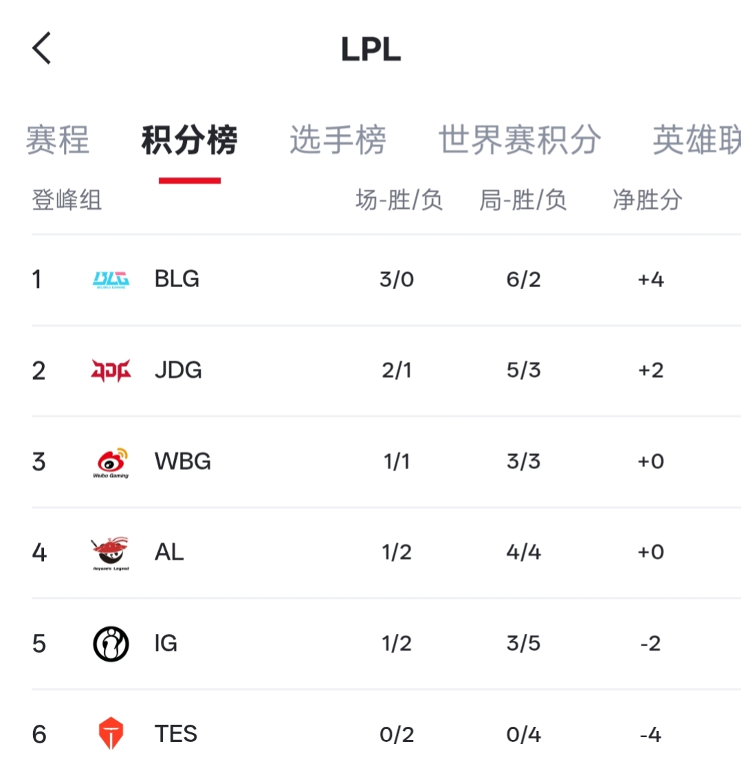 (各位JRs亦可参照文末指引,前往虎扑英雄联盟赛事页查看实时更新的完整LPL战队排名)