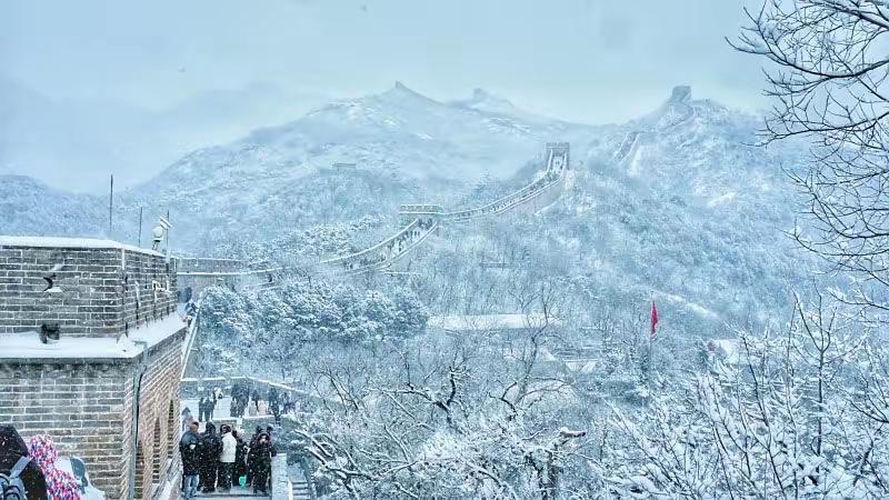 万里长城银装素裹,北国风光分外妖娆!我要上热榜 八达岭长城雪景 登上山顶看美景