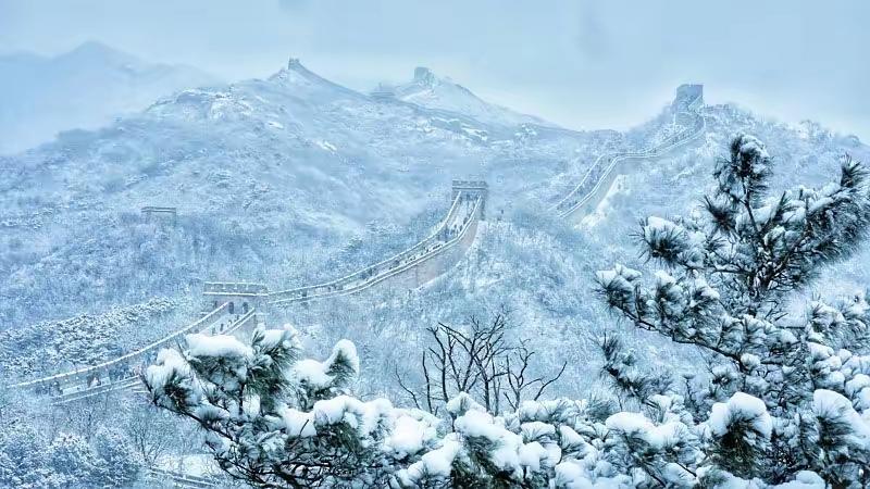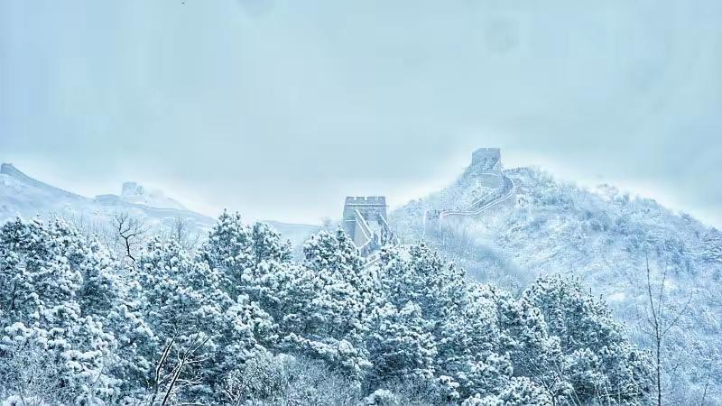 万里长城银装素裹,北国风光分外妖娆!我要上热榜 八达岭长城雪景 登上山顶看美景 自然奇观