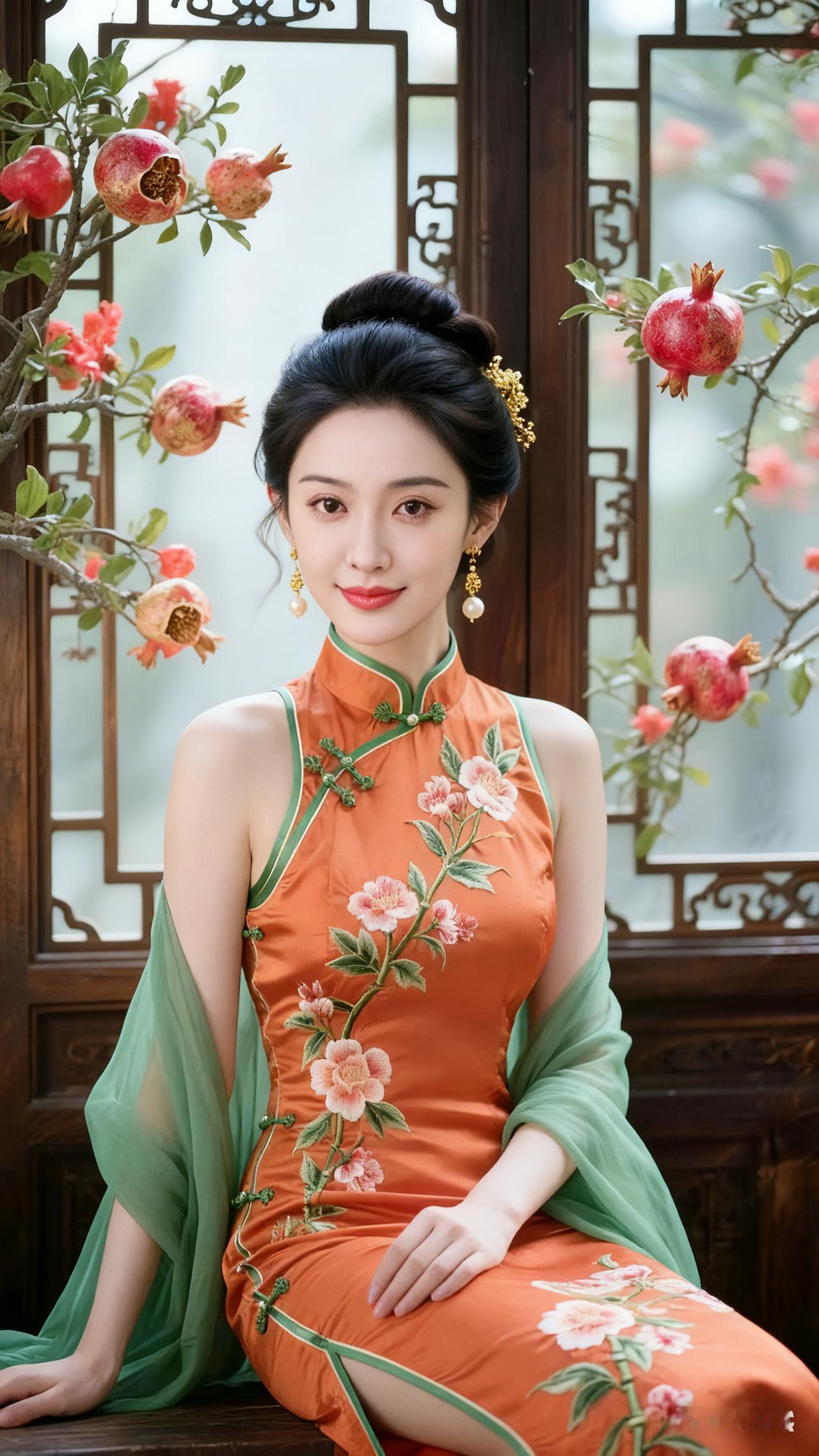 东方美人,古典韵味,红衣绿纱,花枝招展。