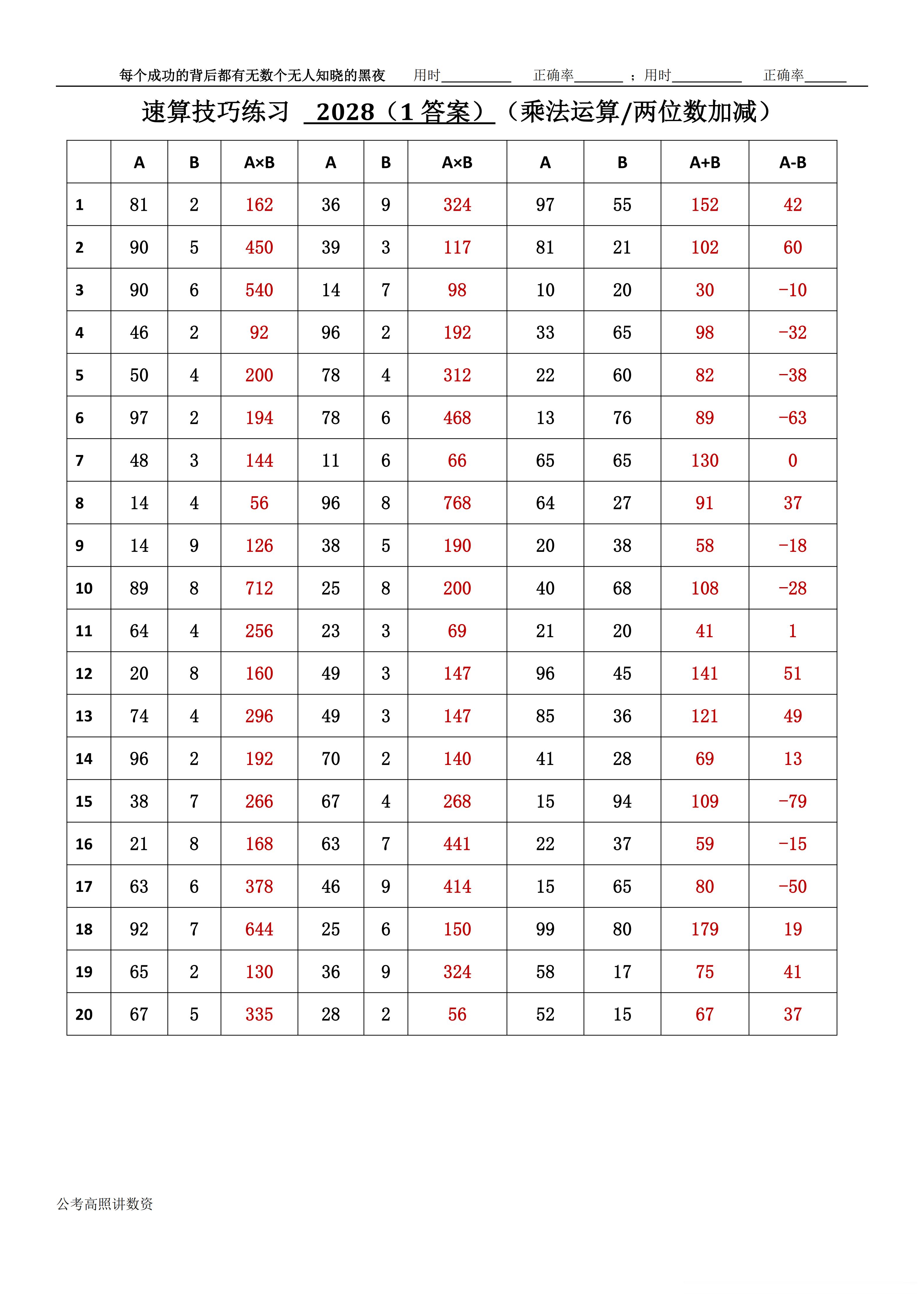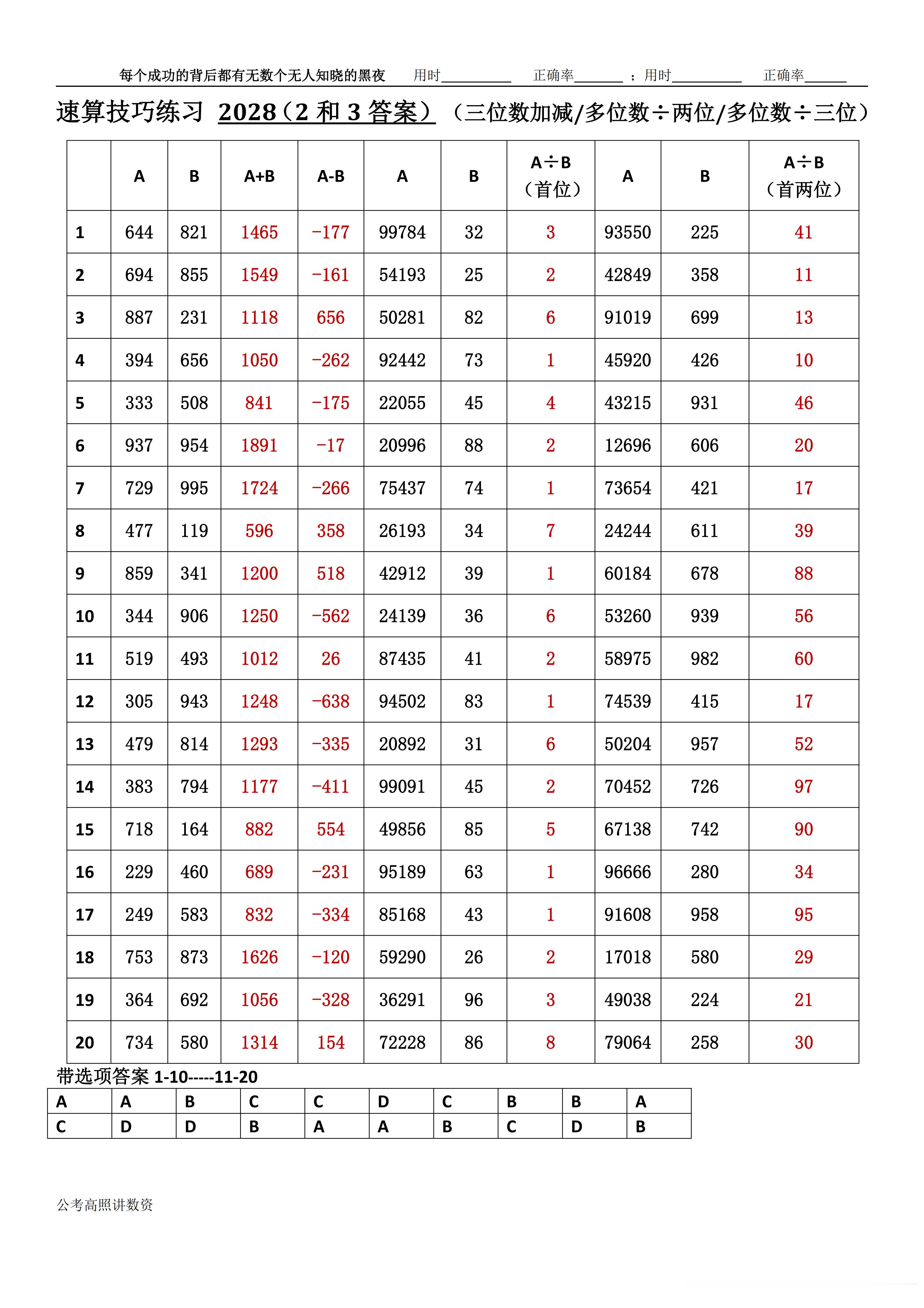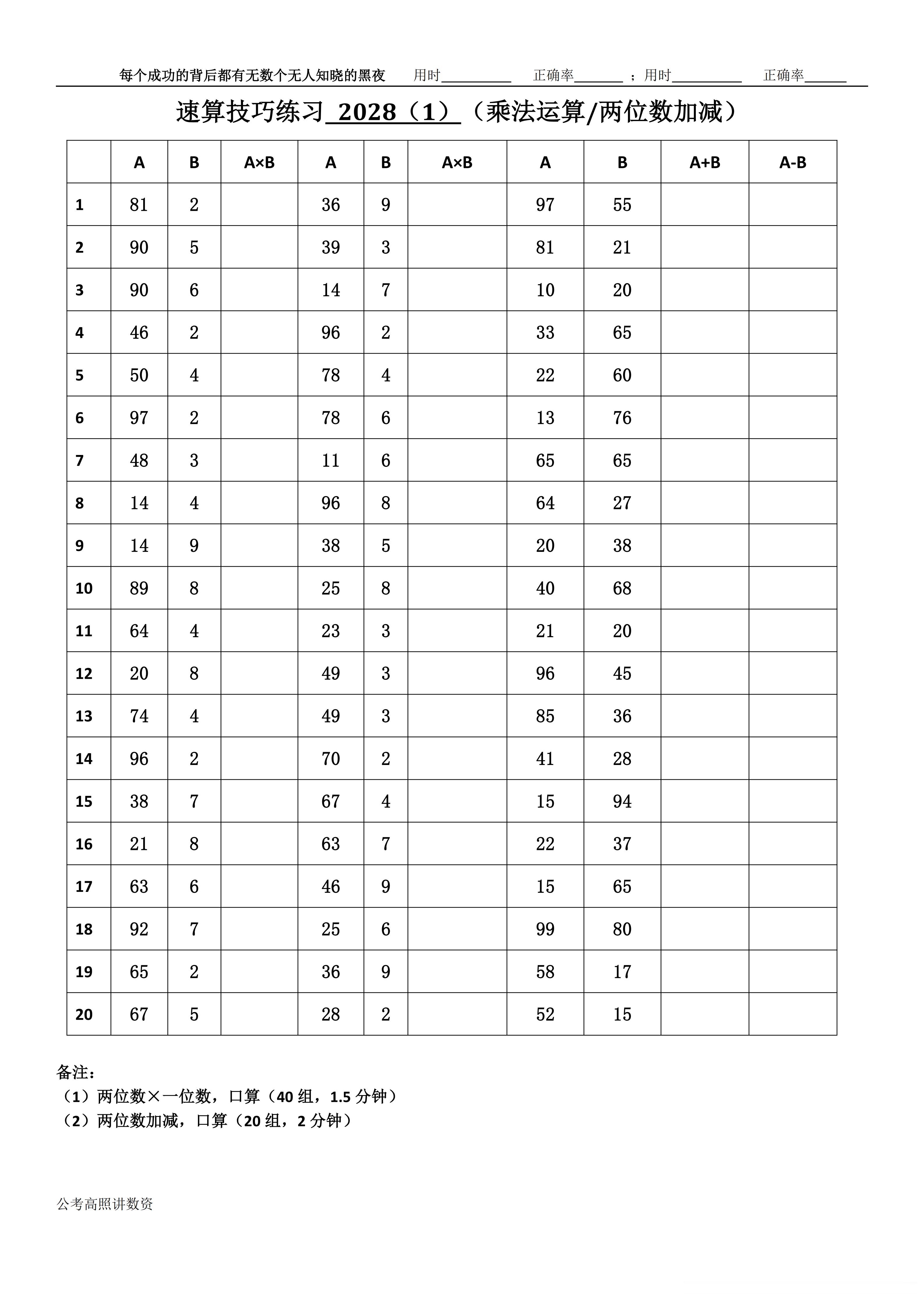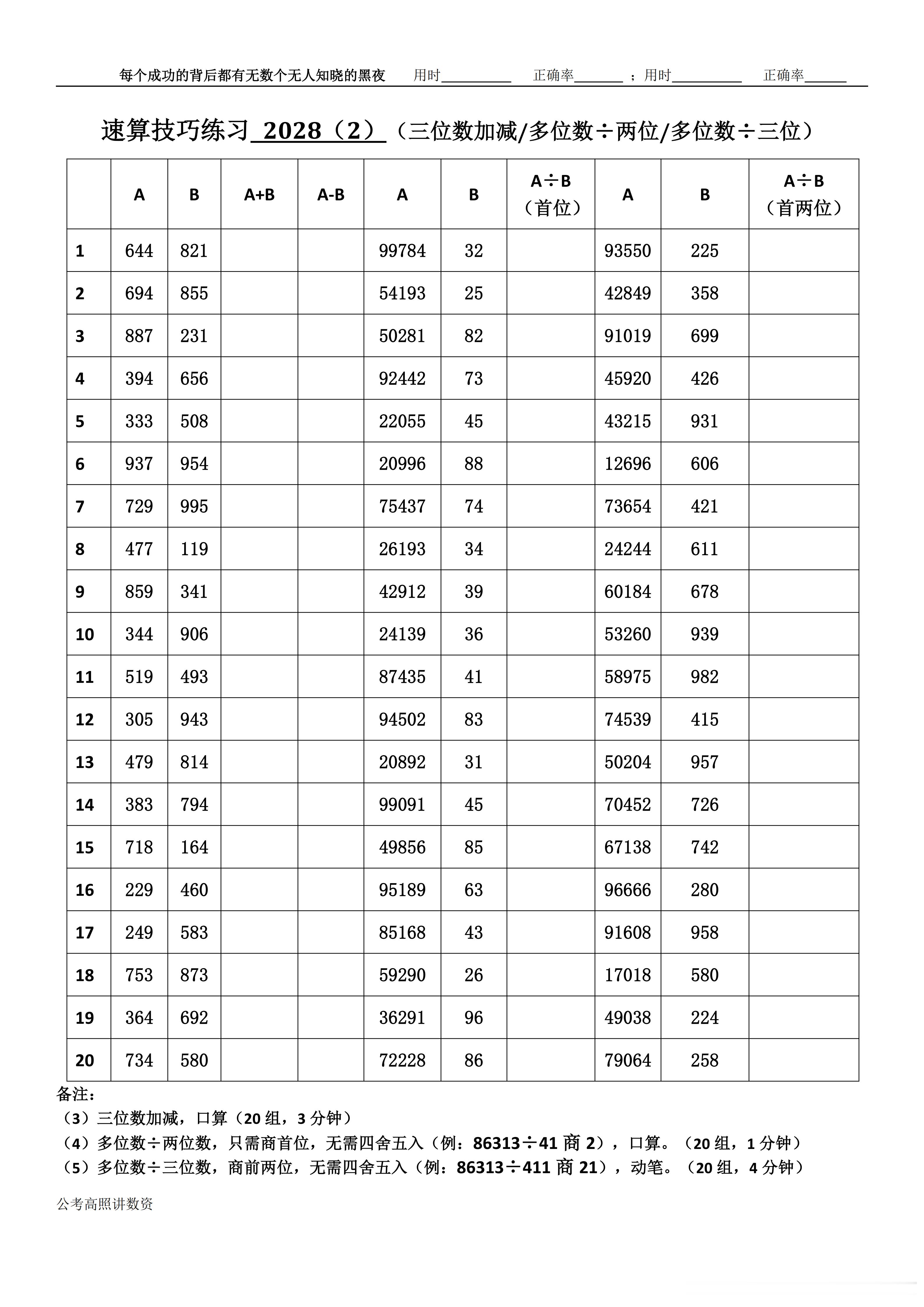 跟着高照练速算决战公考 速算练习2028相信自己,努力学习。速算链接汇总:网页