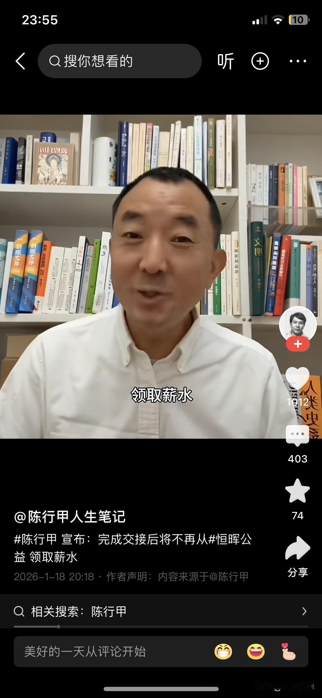 陈行甲这样的人居然也被网暴侮辱,说什么拿公益基金70万年薪。要知道在深圳,一个公司总监随便都是70万,陈行甲也有一家老小,全职做公益基金,不应该有薪水维持基本体面?难道要饿着肚子或者拿最低工资全职公益。我们社会对待人太极端了。