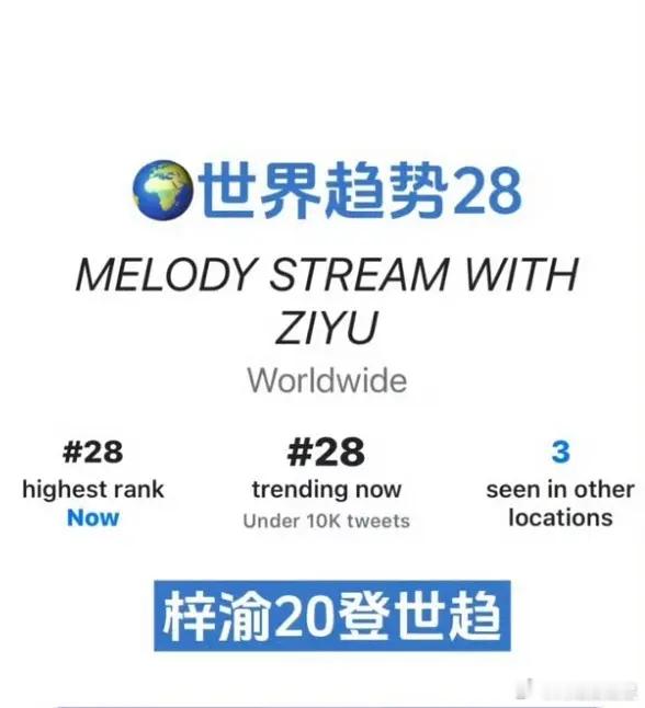 梓渝演唱会开三天,三天都登上了世趋,这是内娱第一个连续三天登世趋的明星吧,不懂就问,这是不是全球都爆的意思啊梓渝红发露额头