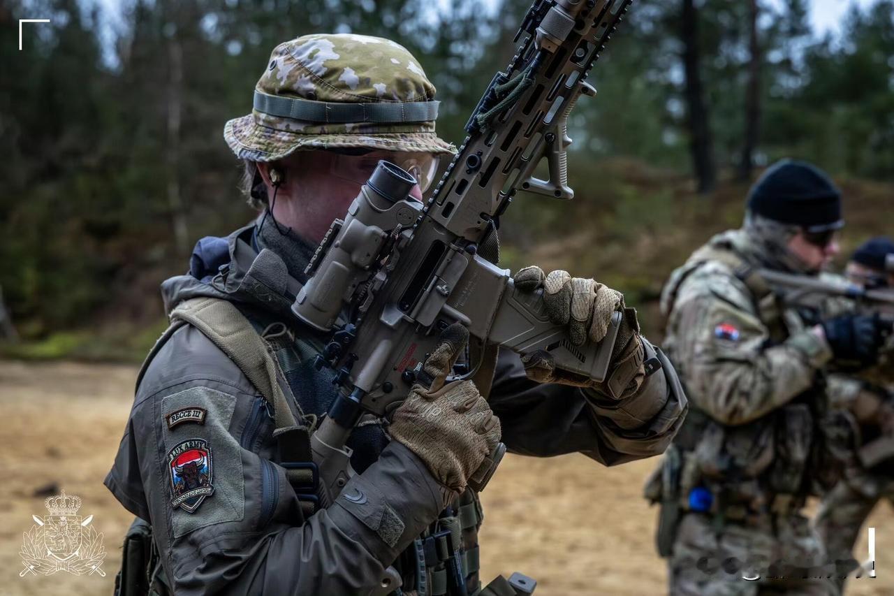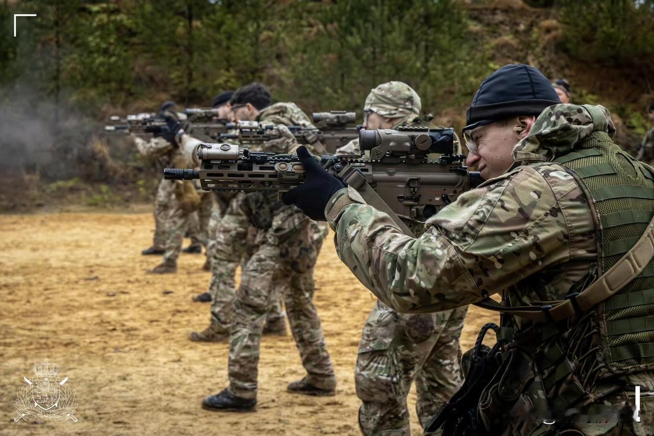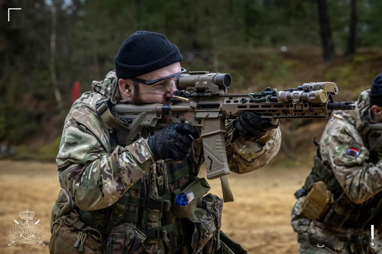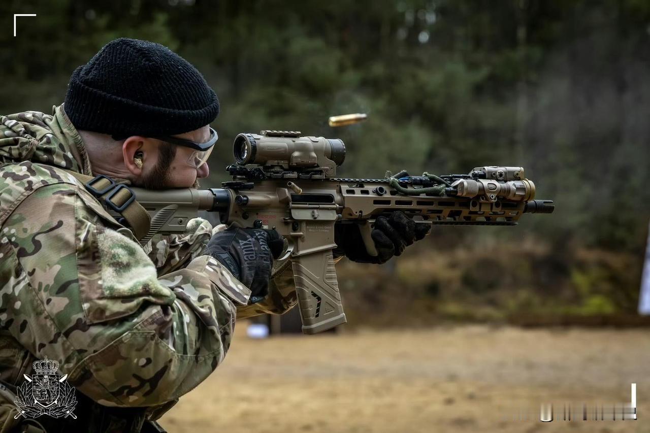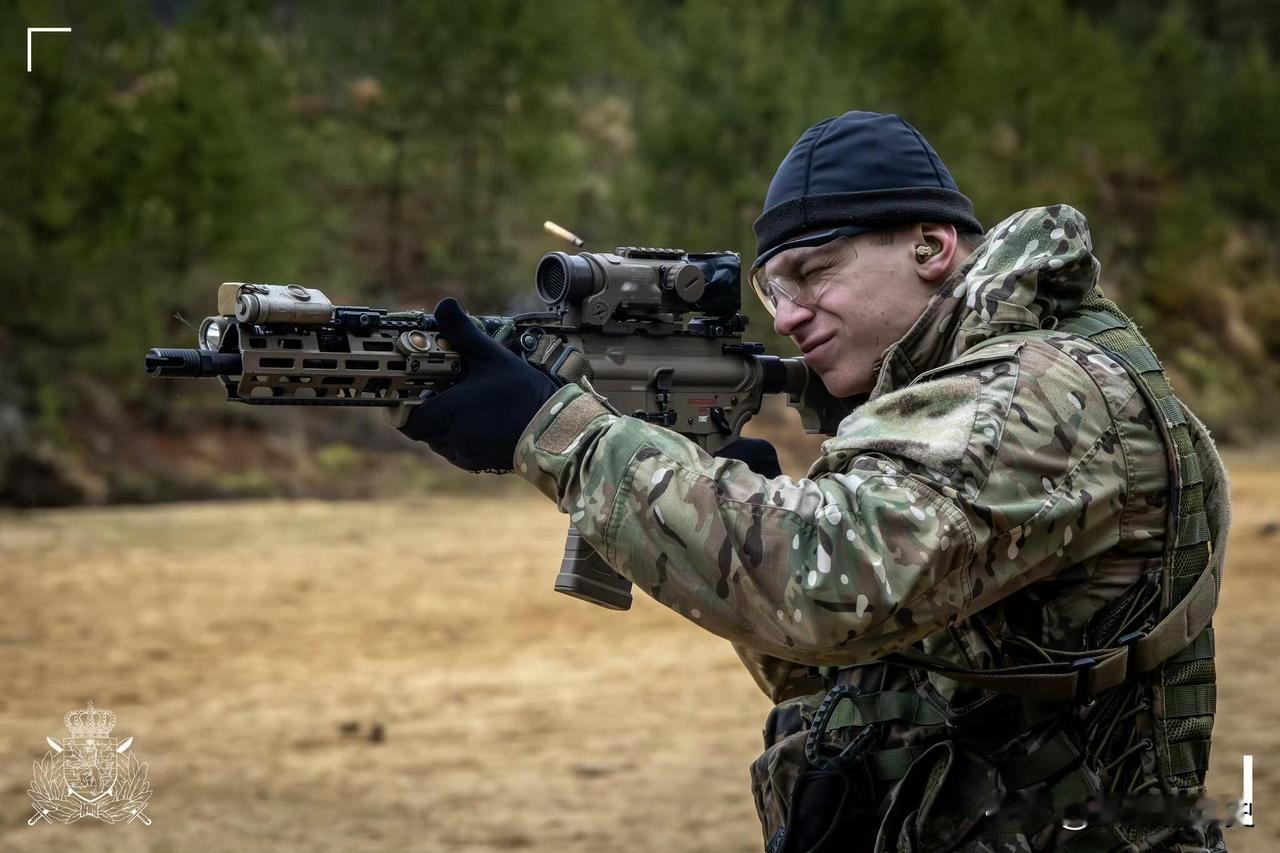 卢森堡国防军新兵正在使用 HK416A7 突击步枪进行中距离射击训练,枪上安装的