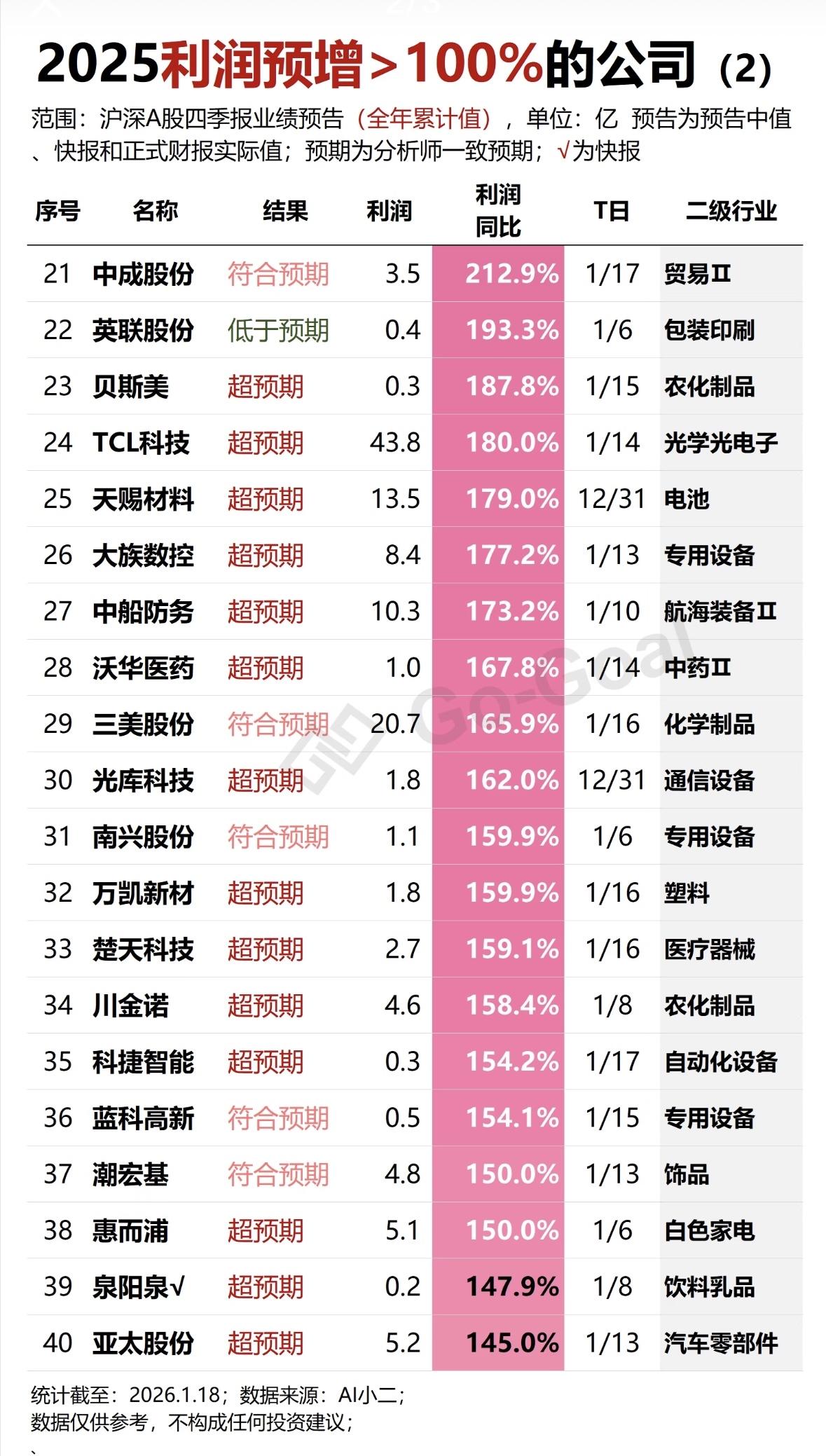 2025年利润增长超100%的潜力股公司盘点! "多行业龙头利润暴增,生物科技