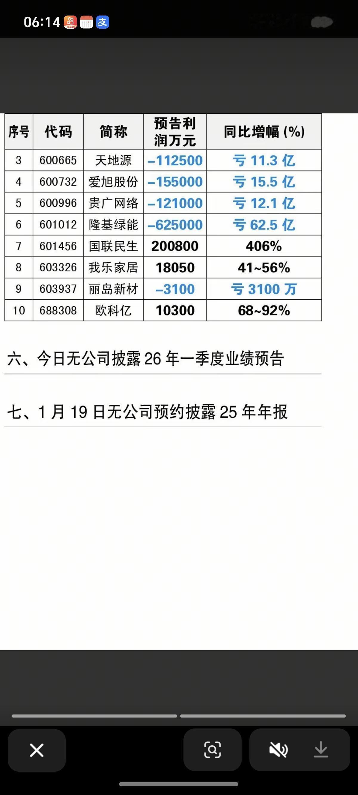 1.19周一 25年度业绩预告! 2家公司实施分红,10家公司披露年报预告