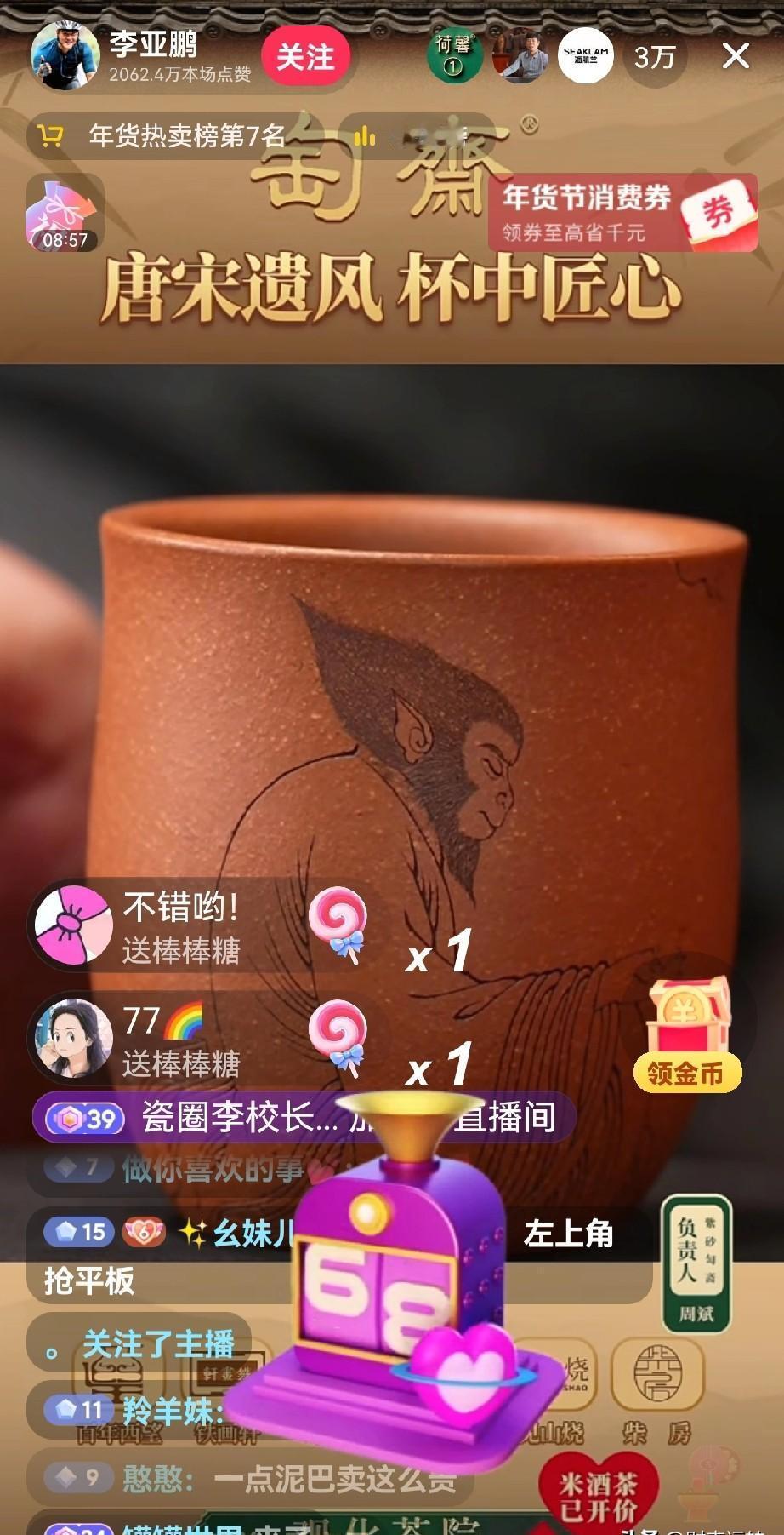 李亚鹏对着手机屏幕,正在给一款红薯干砍价。 背景音嘈杂。 他捻起一片,嚼了两下。 “最后一口价,十九块九。 ” 不是表演。 你见过那种,在山头上滚下来的石头吗? 沉默,但有势能。 一年前,他的直播间还飘着紫砂壶的茶香。 曲高和寡。 后来货架上出现了拖鞋、毛巾、牛肉酱。 有人笑他“沦落”。 他只是把西装外套脱了,卷起衬衫袖子。 数据不会骗人:场均五百万,35%的人,吃完红薯干又回来买了那把壶。 这不是转型,是认知折叠。 把阳春白雪,折叠进柴米油盐的皱褶里。 都知道那四千万的债。 他没躲。 直播时坦荡提起:“这部分,填坑用。 ” 另一部分,流进嫣然的账户和云南的茶山。 他不是在卖惨,是在演示——一个跌倒的中年人,如何用最笨拙的诚实,重新校准重心。 网友刷的礼物,不只是打赏,是投票。 投给一种快要绝迹的体面。 所以你看,屏幕那头刷屏的,哪里是礼物。 那是无数个普通人,在为一个“不逃”的背影付费。 还债的体面,转型的体面,乃至中年人在时代里重新找到位置的体面。 这或许才是直播间里,最值钱的东西。