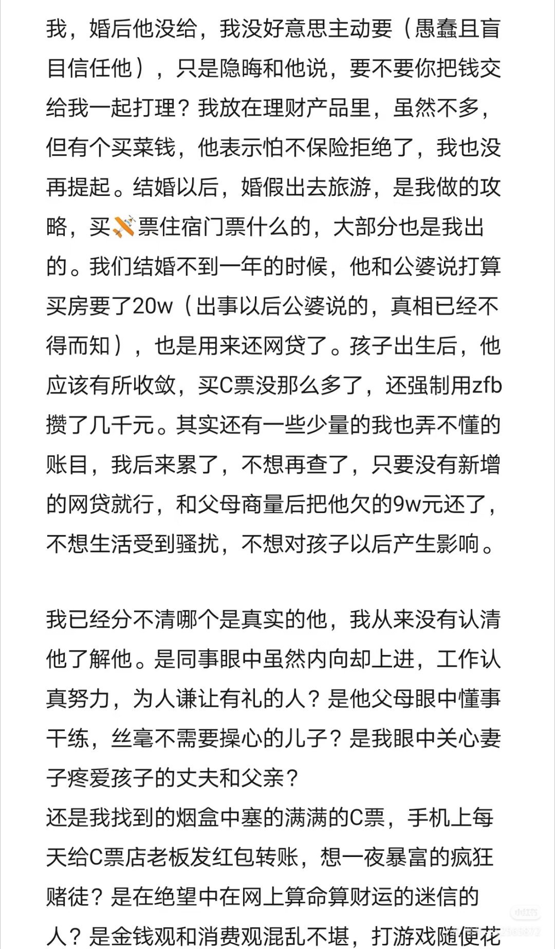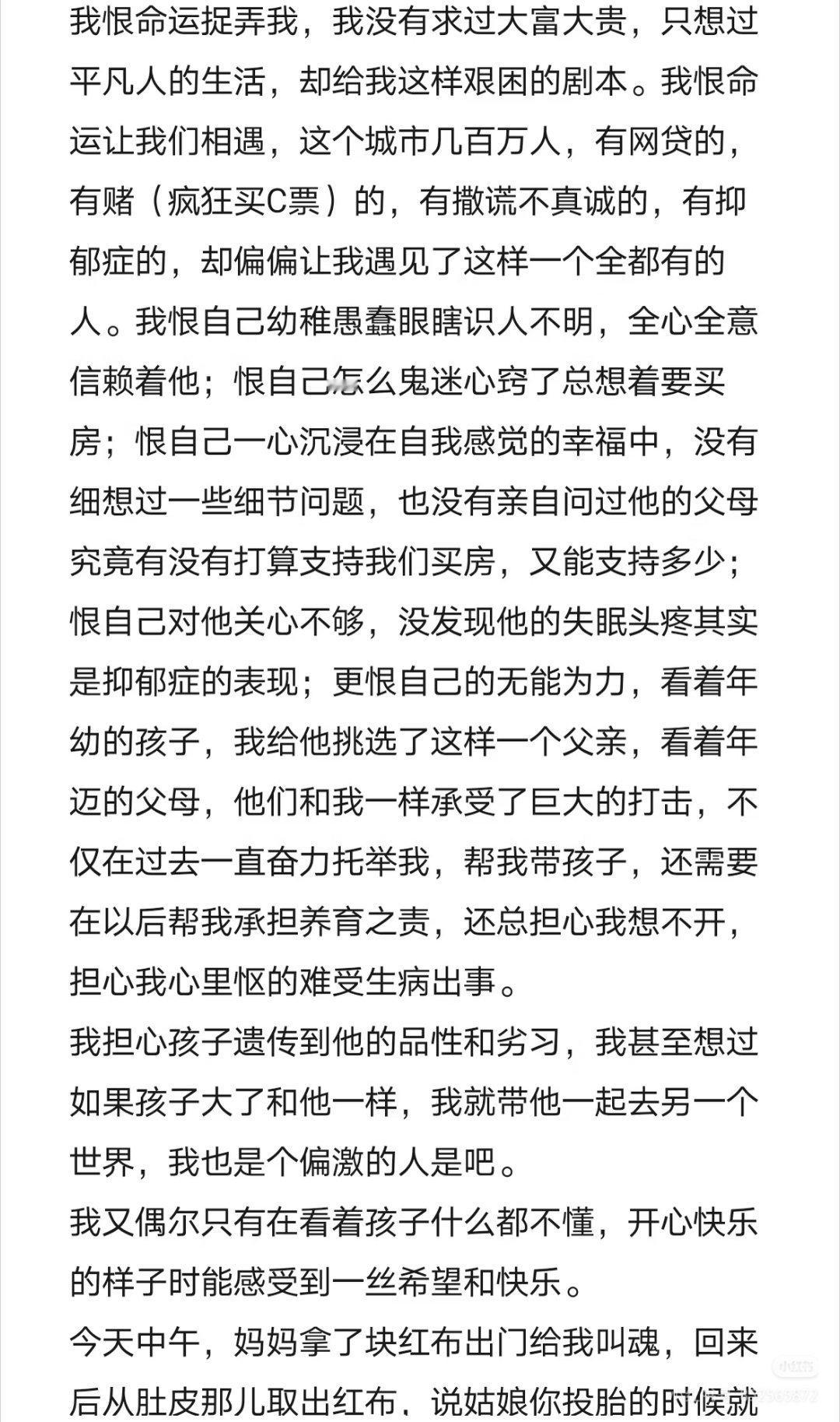 看到朋友分享的一个帖子,说太可怕。可能因为我自己一直都是一个自立的人,我的第一反应不是男方这样带入女主我很伤心。是鄙视。这么煞笔的男人,浪费我那么多时间还有骗婚!人死了不是最可怕的。胆小鬼从一开始就不具备承担家庭,拥有婚姻、妻财子禄的能力。而且胆小到宁可去死都不愿意1想一点办法去赚钱2跟父母开口筹谋。还生下来了带有不劳而获 好逸恶劳 好高骛远 眼高手低的赌徒基因的孩子,污染了自己身为正常人的基因。未来孩子还有好吃懒做、好赌抑郁的倾向。 女主投入了所有的人生,非但没有得到婚姻当中的互相帮助,还要陪着这个地雷一样的孩子长大。时刻担心孩子会不会复制父亲。