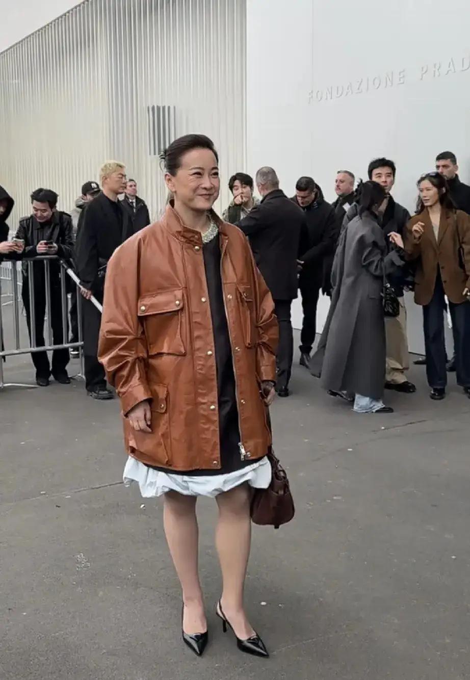 我觉得贾玲这个人, 有一个很严重的问题, 米兰时装周上她的造型真的看得人一头雾水,可爱风黑色连衣裙叠穿工装皮衣,再配双女人味十足的尖头高跟鞋,元素堆得像没搭好的积木,完全没get到时髦点。 但话说回来,这哪是穿搭翻车啊,分明是她根本不在乎别人怎么看。以前靠圆润形象圈粉,现在瘦下来手握Prada代言,从喜剧演员变身国际秀场嘉宾,她的底气早就不是“穿得好看”了。 43岁的她敢在高清镜头下暴露皱纹,敢不迎合主流审美硬凹造型,这种“我穿我开心”的松弛感,比千篇一律的精致穿搭酷多了。 时尚本来就没有标准答案,有人追求协调统一,有人就爱打破规则。你觉得贾玲的混搭是大胆尝试还是真的没找对风格?贾玲 贾玲身材变化
