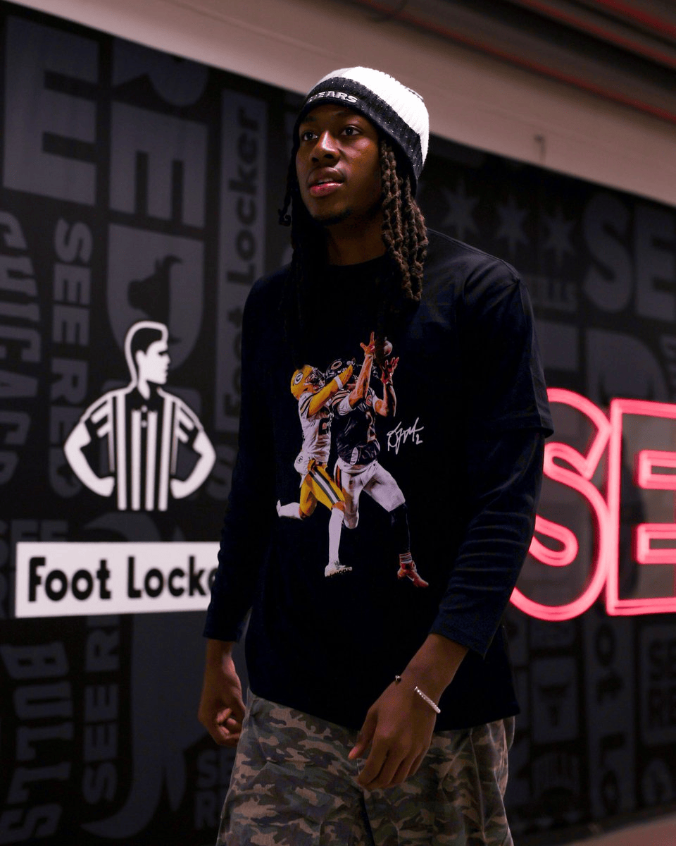 赛前,NBA公牛官方晒出队员阿约-多森姆的照片,为芝加哥熊队加油:GoBears!
