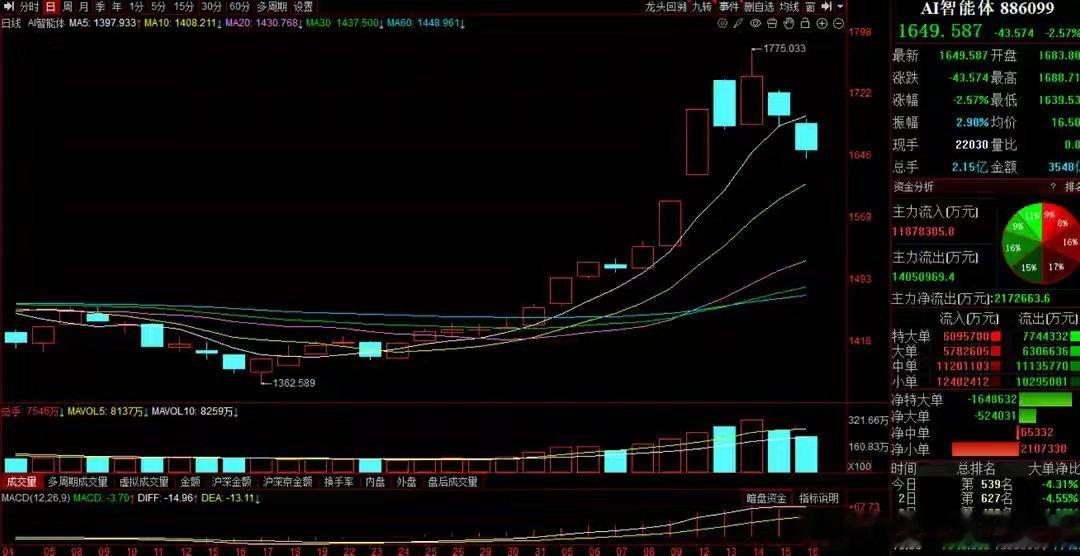 猛料五:互联网大厂杀疯了,AI入口争夺战正式开打!事件:阿里近日发布的最新版千问APP,支持AI点外卖、订机票、订酒店等功能,全面接入阿里生态,实现AI办事闭环。随后,字节、腾讯等互联网大厂也开始发力,意味着2026年AI入口争夺战正式开打!点评:该消息利好AI软件主题多个细分板块。与传统互联网时代的入口争夺不同,当下AI C端入口的竞争逻辑早已从单纯的流量收割,转向“技术能力+生态资源+服务体验”的综合比拼,底层商业逻辑发生根本性重构。对此,有业内机构表示,AI不仅是生产效率工具,而且还是连接所有软件、具身智能体的“导演”,互联网流量、Tokens流量都依赖“入口智能体”的“派单”,所以战略意义十分重大,一旦失守下一代AI入口,巨头可能会逐渐衰落。A股市场方面,AI软件是近期两市核心主线热点,尽管上周出现冲高回落,但交投活跃度仍然极高!持续周期:中线爆发力度:★★★★★板块资金面:过去1个月以来,AI软件端多个细分板块中有31家公司被主力机构大幅加仓,是近期除了商业航天外,主力机构买入第二多的板块。值得注意的是,机构布局AI软件在商业航天后,也表明AI软件可能会替代商业航天成为短期新的领涨主线。板块技术面:元旦节后,AI软件端多个细分板块出现连续逼空大涨。不过上周在监管层压制下出现冲高回落,周五板块指数已经跌破5日线,并开始回撤10日线。10日线是板块中短期上行通道的趋势线,不会轻易被击穿。相关公司(包括但不限于):因赛集团(300781)、宏景科技(301396)、每日互动(300766)、金现代(300830)等。