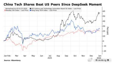 中国科技股以强势开启新年,本月内岸上类似纳斯达克的科技指数飙升近13%。自去年4月以来,对本土技术的热情一直是中国股市牛市的最大推动力尽管陷入房地产低迷和消费疲弱。随着Depseek推出新的人工智能模型,中国公布以技术自立为重点的五年经济蓝图,这一势头在未来几个月可能会获得进一步支持。