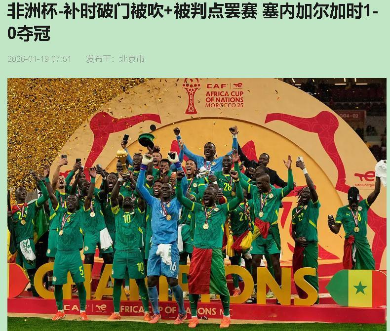 你看过裁判当主角的决赛吗?昨晚非洲杯就是了。塞内加尔赢了,可我觉得足球输了。 VAR一响,味儿就变了。92分钟塞内加尔绝杀被吹,96分钟摩洛哥就获点球——这时间线巧得像剧本。塞内加尔全队炸了直接退场,换你你也崩:拼到加时的努力,裁判一挥手就悬了。 但马内真爷们儿。全队往更衣室走,只有他挥手喊人回来,甚至跑去把主帅拽回球场。他心里明镜似的:闹下去,吃亏的是自己。这沉着,比进球还值钱。 摩洛哥那个点球,简直离谱。迪亚斯勺子点球软绵绵送门将怀里,他被嘘懵了,下场时泪流满面。压力能压垮技术,这画面扎心。 最讽刺的是,逃过一劫的摩洛哥,加时最后时刻被帕佩·盖耶一脚世界波打穿。门将布努一整晚神扑,却败给这记天外飞仙——足球有时就这么荒诞,你防得住一切,防不住命运开玩笑。 作为球迷,憋屈。我们熬夜想看到热血、对抗、纯粹的胜负,不是VAR和裁判的抢戏。技术能辅助公平,但不能变成主角。冠军值得欢呼,但比赛过程像吃了苍蝇——争议盖过精彩,谁的遗憾都补不回来。 足球该是绿茵上的较量,不是屏幕后的判定。希望下次,我们能纯粹地为足球尖叫,而不是为闹心摇头。非洲杯-补时破门被吹+被判点罢赛 塞内加尔加时1-0夺冠