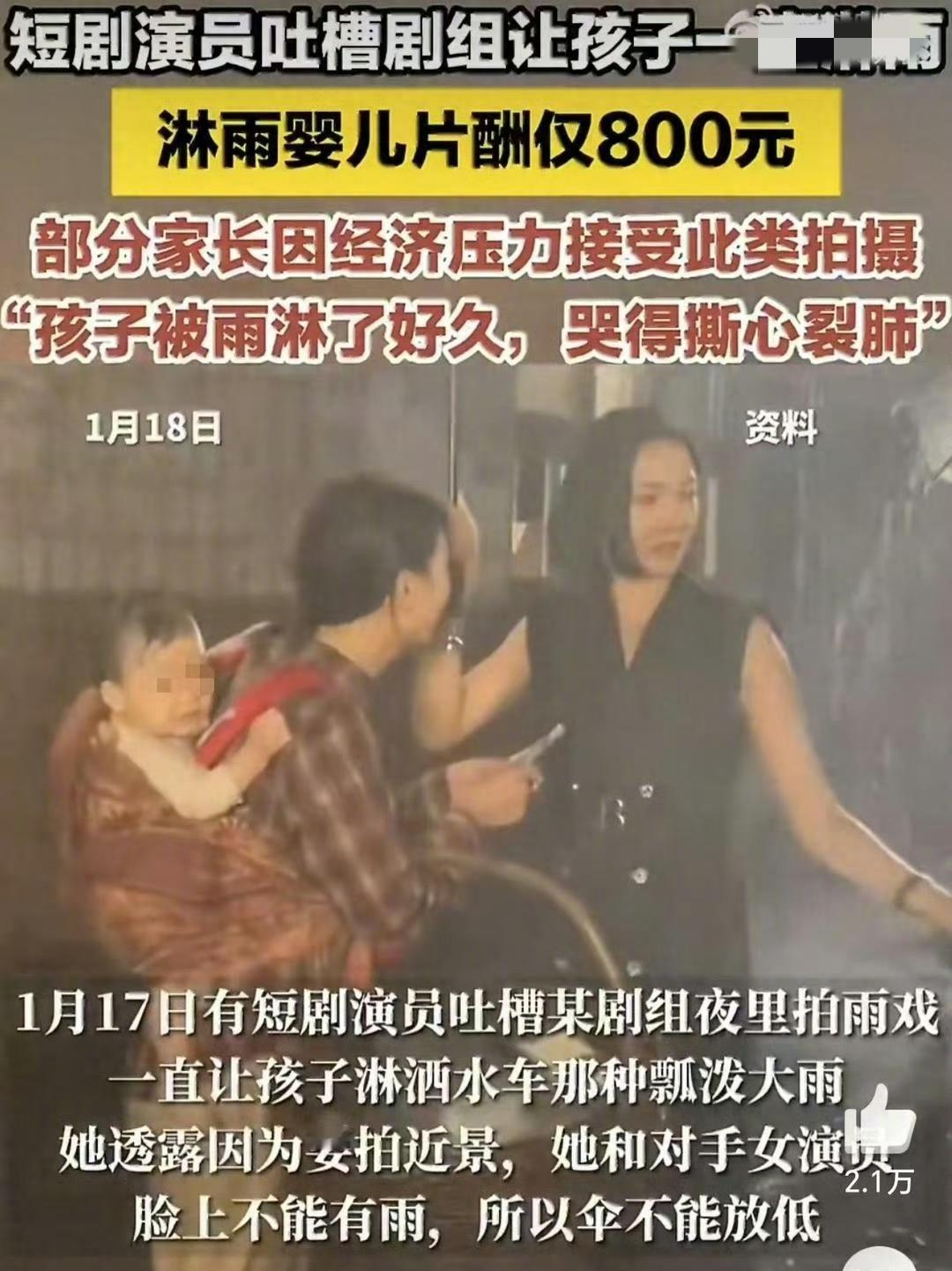 短剧剧组让婴儿淋冷水雨?800片酬换撕心裂肺的哭,家长心也够大的! 谁看了不
