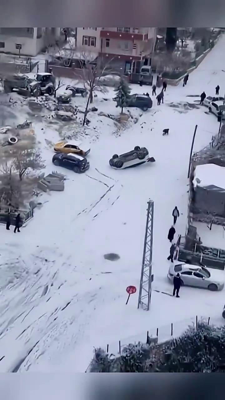 突然刹不住了,幸亏反应快。 完了,彻底刹不住了,快让开。这在后备箱掏什么?赶紧拽住了,这车往下出溜了,快拽住了。完了,这后边幸亏有个柱子,还好挡住了。