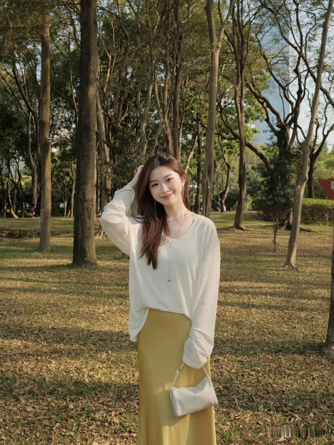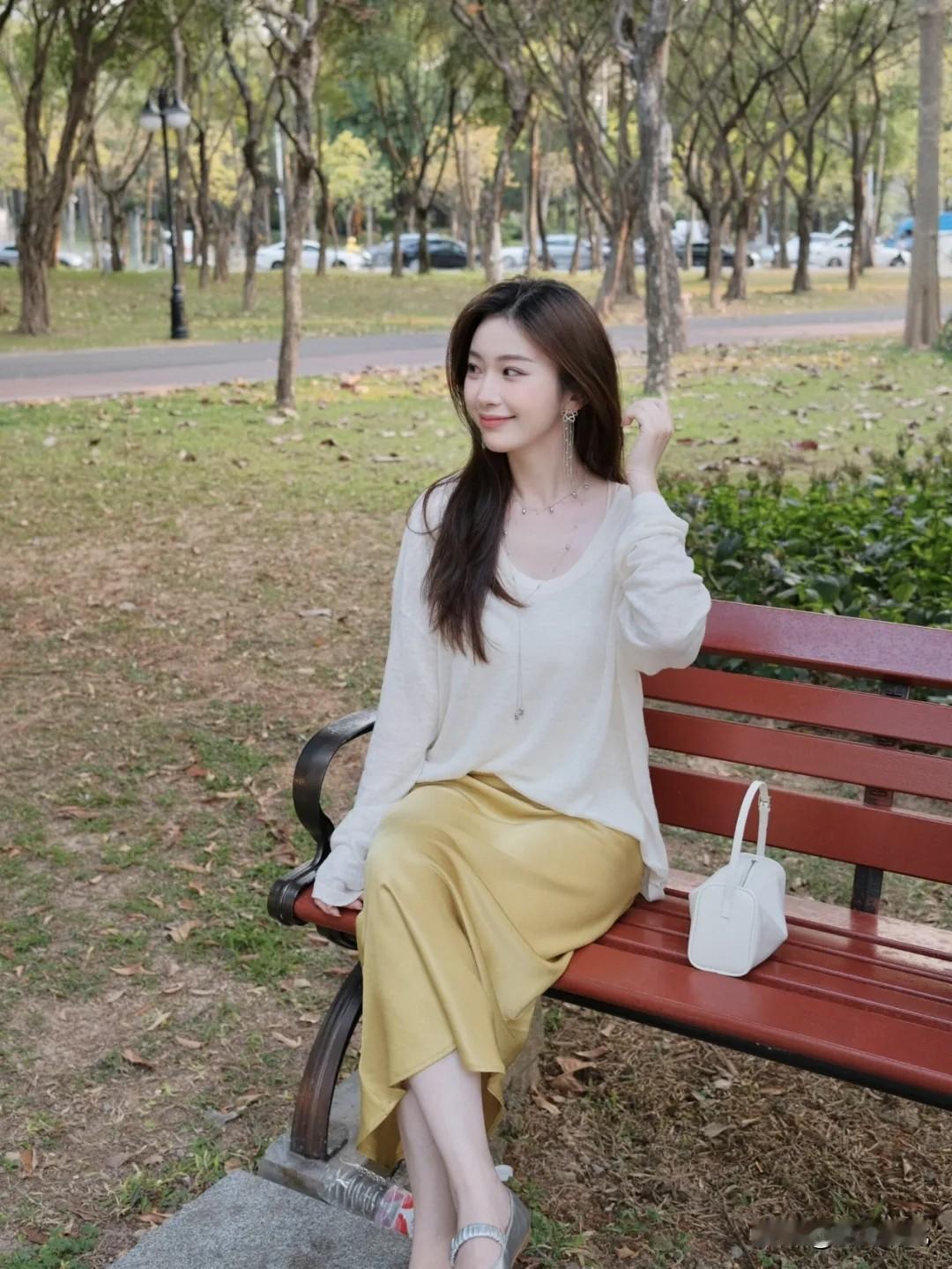 在公园拍照怎样才有那种温柔又松弛的氛围?其实一个简单动作就能搞定! 最爱“侧坐