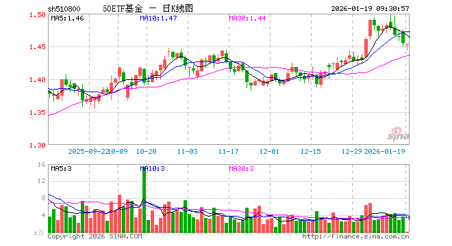 1月19日,50ETF基金(510800)开盘跌0.14%,报1.453元。50ETF基金(510800)重仓股方面,贵州茅台开盘跌0.01%,中国平安跌0.08%,招商银行涨0.03%,紫金矿业涨0.40%,长江电力涨0.34%,兴业银行跌0.10%,恒瑞医药跌0.23%,中信证券跌1.21%,中芯国际涨0.05%,药明康德涨0.10%。