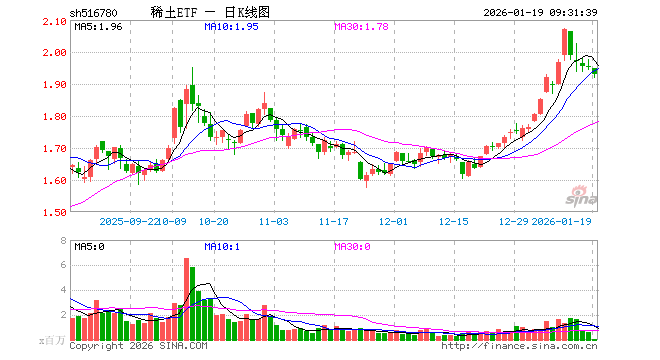 1月19日,稀土ETF(516780)开盘跌0.36%,报1.947元。稀土ETF(516780)重仓股方面,北方稀土开盘涨0.00%,卧龙电驱涨1.37%,领益智造跌2.60%,中国稀土涨0.38%,盛和资源涨0.38%,格林美涨0.77%,金风科技跌9.99%,包钢股份跌10.00%,厦门钨业涨0.02%,中国铝业跌0.08%。