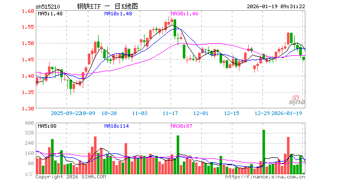 钢铁ETF(515210)业绩比较基准为中证钢铁指数收益率,管理人为国泰基金管理有限公司,基金经理为吴中昊,成立(2020-01-22)以来回报为71.81%,近一个月回报为6.61%。