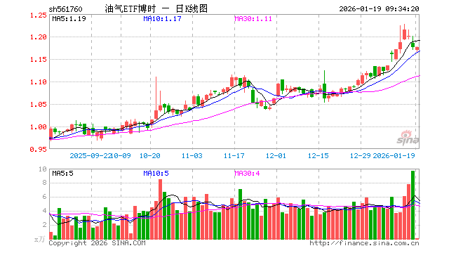 1月19日,油气ETF博时(561760)开盘跌0.51%,报1.170元。油气ETF博时(561760)重仓股方面,中国海油开盘跌0.17%,杰瑞股份跌2.74%,中国石油跌0.82%,中国石化跌0.34%,招商轮船涨0.53%,广汇能源涨0.00%,中远海能涨0.29%,招商南油涨0.00%,海油工程涨0.67%,洲际油气跌1.49%。