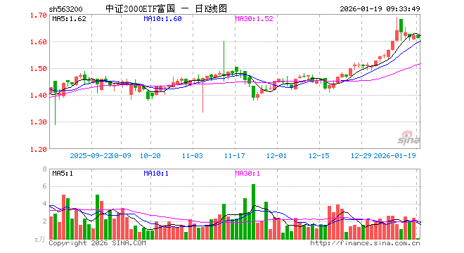 中证2000ETF富国(563200)业绩比较基准为中证2000指数收益率,管理人为富国基金管理有限公司,基金经理为牛志冬,成立(2023-09-28)以来回报为62.00%,近一个月回报为13.68%。