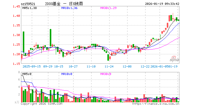 1月19日,国证2000ETF指数基金(159521)开盘涨0.36%,报1.378元。国证2000ETF指数基金(159521)重仓股方面,东芯股份开盘涨2.01%,虹软科技跌1.03%,聚辰股份涨2.07%,剑桥科技跌10.00%,云天励飞跌1.63%,香农芯创跌1.26%,长芯博创涨2.28%,仕佳光子跌1.72%,派能科技跌0.37%,凌云光跌0.15%。
