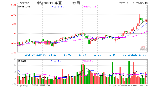 1月19日,中证2000ETF华夏(562660)开盘跌1.14%,报1.818元。中证2000ETF华夏(562660)重仓股方面,天奥电子开盘跌0.04%,国恩股份跌0.68%,亚太股份跌0.54%,宝胜股份跌0.13%,绿色动力涨0.58%,春秋电子跌0.43%,光电股份跌0.20%,麦克奥迪涨0.33%,杰普特跌0.27%,道恩股份涨0.26%。