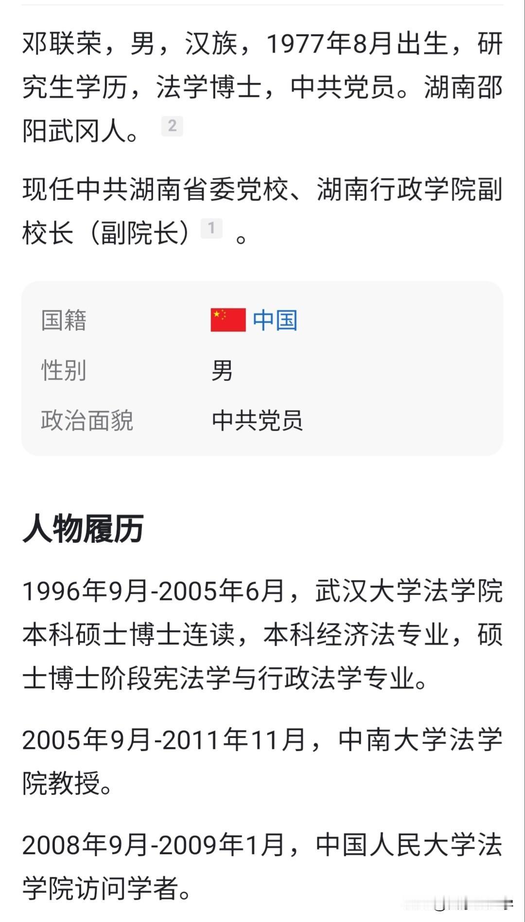 湖南警察学院校长一空缺将近一年,新校长或许已经藏在前不久湖南发布的最新任前公示中。 其中提到现任湖南行政学院副院长的邓联荣拟任省属本科高校正职。 在这批拟任高校正职的学者中,只有邓联荣是法学背景出身,而且邓联荣还有985名校的学习和工作背景(武汉大学、中南大学)。 从专业对口、工作经历来看,只有他最有可能出任湖南警察学院的新任校长。