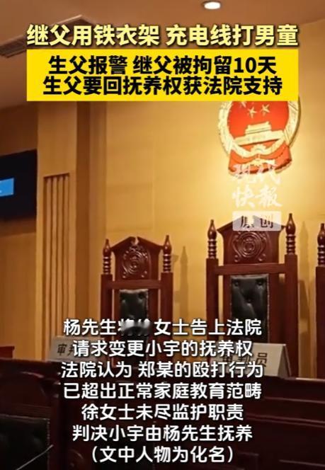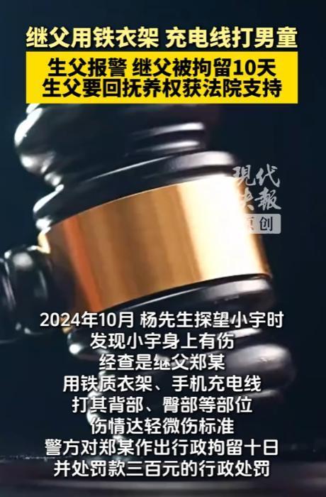 重庆,男子和前妻离了婚,他去看望7岁的儿子,意外发现,孩子身上有伤痕,他着急了,他一问,儿子告诉他,这都是继父打的,继父用铁衣架,数据线殴打他,男子气愤了,赶紧报了警。 一场本应充满温情的父子探望,却撕开了重组家庭里未成年人遭受暴力的残酷真相。 重庆一名父亲的偶然发现,不仅让7岁儿子的遭遇浮出水面,更引发了关于抚养权归属、监护人责任与未成年人保护的深层讨论。 两年前,杨先生(化名)和前妻的婚姻,在柴米油盐的消磨中走到尽头,两人平静分割财产,年仅5岁的儿子小宇,被判给了母亲抚养。 离婚后的日子里,杨先生守着建材市场的小门面,每天起早贪黑奔波,生活里最大的盼头,就是每周一次的探望。 他总担心年幼的儿子会淡忘自己,每次去都塞满一书包零食玩具,只盼着孩子能在短暂相处里,感受到一点父爱的温度。 起初,杨先生对儿子的生活还算放心,他相信前妻会尽到母亲的责任,直到前妻再婚的消息传来,他心里的担忧才悄悄冒了出来,一个陌生男人的闯入,会不会让儿子受委屈。 这份不安,在2024年10月的一次探望中,变成了锥心的刺痛,那天见面,往日里一见他就扑上来撒娇的小宇,却像换了个人。 孩子低着头,小手紧紧攥着衣角,眼神黯淡无光,连喊一声爸爸都带着怯生生的颤抖。 杨先生蹲下身想摸摸儿子的头,小宇却像受惊的小兽,猛地往后瑟缩,这个下意识的动作,瞬间揪紧了他的心。 他强压着不安,轻轻拉起孩子的衣袖,眼前的景象让他浑身发冷,几道紫红色的瘀痕横亘在胳膊上,有的地方还结着薄薄的痂,像一条条狰狞的伤疤。 他颤抖着手掀开孩子的衣服,后背、大腿上,新旧交错的伤痕密密麻麻,有的是清晰的条状红痕,有的是乌青的瘀块,一看就是被坚硬的东西反复抽打造成的。 杨先生的眼眶瞬间红了,他忍着心疼柔声询问,小宇终于绷不住,哭着撩起衣服,断断续续说出了伤痕的来历。 原来,自从母亲再婚后,继父郑某(化名)就成了家里的“规矩制定者”,吃饭慢了要挨打,玩具没收好要挨打,甚至多看了两眼手机,都会换来铁衣架或数据线的抽打。 这个在外人面前客客气气的男人,关起门来,对7岁的孩子毫不留情,更让人心寒的是,小宇的母亲并非不知情。 为了所谓的安稳日子,她选择了放任,把孩子推向了深渊,杨先生抱着哭成泪人的儿子,心疼得浑身发抖,他当即掏出手机报警,声音因为愤怒和哽咽变得沙哑。 他说,就算拼尽全力,也要把儿子从火坑里救出来,警方的介入,让这起隐藏的家暴事件有了定论。 民警赶到后,第一时间拍摄固定了小宇身上的伤痕,又调取了邻居提供的录音,那段清晰记录着孩子哭声和男人呵斥声的音频,成了郑某施暴的铁证。 面对确凿的证据,郑某无从抵赖,承认了殴打小宇的事实,经鉴定,小宇的伤情构成轻微伤,郑某因违反《治安管理处罚法》,被处以行政拘留十日、罚款三百元的处罚。 而更让人揪心的,是小宇的心理状态,长期的暴力对待,让这个本该活泼开朗的孩子变得沉默寡言,对继父充满恐惧,甚至不敢主动和陌生人说话。 心理医生表示,身体的伤痕能愈合,但孩子心里的阴影,需要长期的疏导和陪伴才能慢慢抚平。 这场风波后,杨先生毫不犹豫地向法院提起诉讼,要求变更小宇的抚养权。 法庭上,法官结合小宇的意愿、母亲监护失职的事实,以及“最有利于未成年人”的原则,最终判决将抚养权变更至杨先生名下。 脱离了暴力环境的小宇,脸上渐渐重新有了笑容,他拉着爸爸的手说,想永远和爸爸在一起。 《中华人民共和国未成年人保护法》早已明确,家庭暴力不是“家务事”,而是侵犯未成年人合法权益的违法行为。 无论是亲生父母还是继父母,都有义务用耐心和关爱教育孩子,而非用拳头和棍棒立规矩。 婚姻的聚散离合,从来不该成为孩子承受苦难的理由,杨先生的及时报警,不仅为儿子撑起了一把保护伞,更给所有家长敲响了警钟。 监护权的背后,是沉甸甸的责任,这份责任,不会随着婚姻的结束而消失,更不该在重组家庭里被轻易漠视。 当小宇重新绽放笑容的那一刻,我们更该明白,每一个孩子都值得被温柔以待。 唯有家庭、社会和法律的三重守护,才能织就一张严密的保护网,让所有未成年人,都能在阳光下健康成长。 信息来源:现代快报2026-01-14发布:7岁男童遭继父家暴,生父起诉要回抚养权