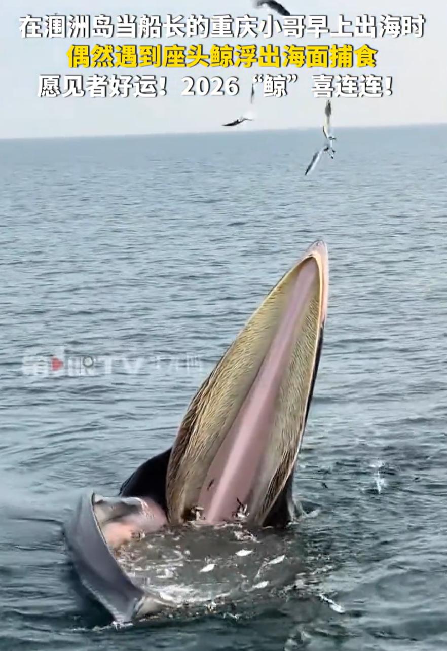 太惊喜了!广西北海,一位游客早上坐船出海,原本只是想看看大海,拍拍风景,心里偷偷希望能遇到一只鲸鱼。结果没想到的是,居然遇到了一只座头鲸,还看到它浮出水面张开大嘴,正在捕食小鱼。那一刻的震撼,简直不言而喻。网友:这一口顶我吃一个月了 视频中,一头座头鲸缓缓浮出水面,张开了巨大的嘴。那一瞬间,嘴里满是银光闪闪、活蹦乱跳的小鱼,像一口沸腾的银色大锅。船上的游客们纷纷拿起手机记录这难得的瞬间 这事传到网上,大家聊得挺热闹。有网友在感慨,涠洲岛附近能看到鲸鱼捕食,是个挺好的信号。这几年,沿海确实很少听到那种毁灭性的滥捕了,休渔禁渔的措施,看来慢慢起了作用。鱼多了,鲸鱼才会跟着来。这是简单的道理,也是让人安心的变化 也有网友觉得有趣,好奇为什么小鱼自己会往鲸鱼的嘴里跳 说起来,鲸鱼捕食时小鱼往它嘴里跳的现象,其实背后有一定的生物学原理。这个过程叫做“围捕”,是鲸类特别是座头鲸常用的捕食方式 座头鲸在捕食时,通常会通过一个非常有技巧的方式来聚集小鱼。它们会在水中游动,利用巨大的嘴巴将水吞入,然后通过口腔内的“筛网”结构,将水排出,留下其中的鱼群。值得注意的是,鲸鱼的喉咙里并没有牙齿,它们是通过鲸须来过滤食物的 当座头鲸在水中“张嘴”时,水中的小鱼由于“压力差”或是对突如其来的开口产生了反应,它们会被鲸鱼吞下的水流和波动带动,往鲸鱼的嘴里游动。鲸鱼通过在水中的快速移动和动作制造出一种捕食场的“陷阱”,小鱼就像被“吸引”到鲸鱼的嘴巴里,自动进入 归根结底,我觉得,这种景象虽然让人心生震撼,但更重要的是,它让我们意识到,保护海洋生态、恢复自然环境是多么重要。我们常常觉得遥不可及的海洋和动物,其实就在我们身边