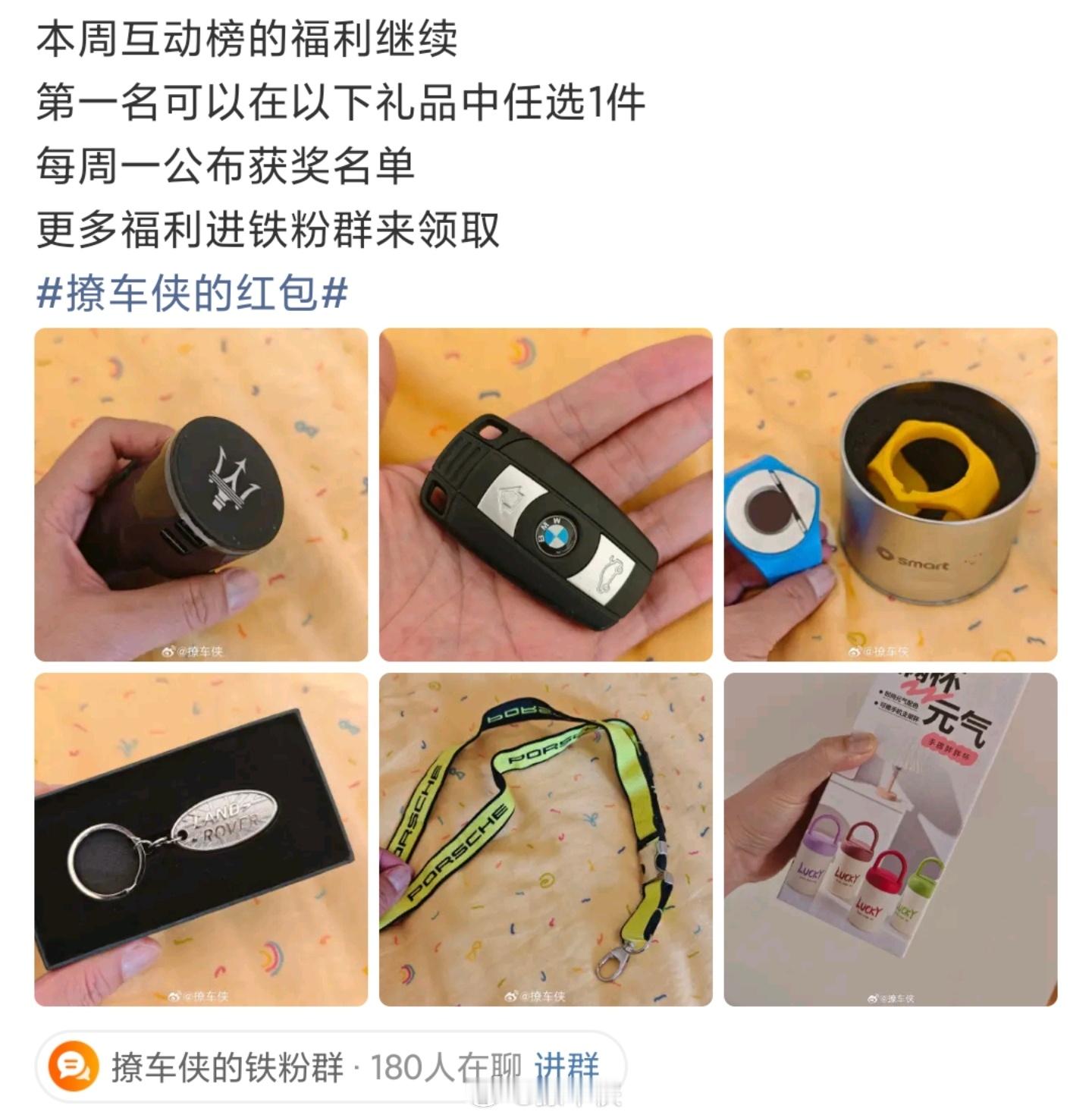 恭喜获得上周互动榜第一感谢大V的关注和支持福利礼品6选1给你快递到家本周互动榜福利继续更多福利进铁粉群来领取撩车侠的红包