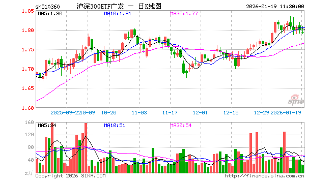 1月19日,截止午间收盘,沪深300ETF广发(510360)跌0.39%,报1.792元,成交额4635.94万元。沪深300ETF广发(510360)重仓股方面,宁德时代截止午盘跌1.42%,贵州茅台跌0.28%,中国平安跌0.56%,招商银行跌0.21%,紫金矿业跌0.88%,新易盛涨1.44%,中际旭创跌1.78%,美的集团涨0.06%,东方财富跌1.59%,长江电力涨0.83%。